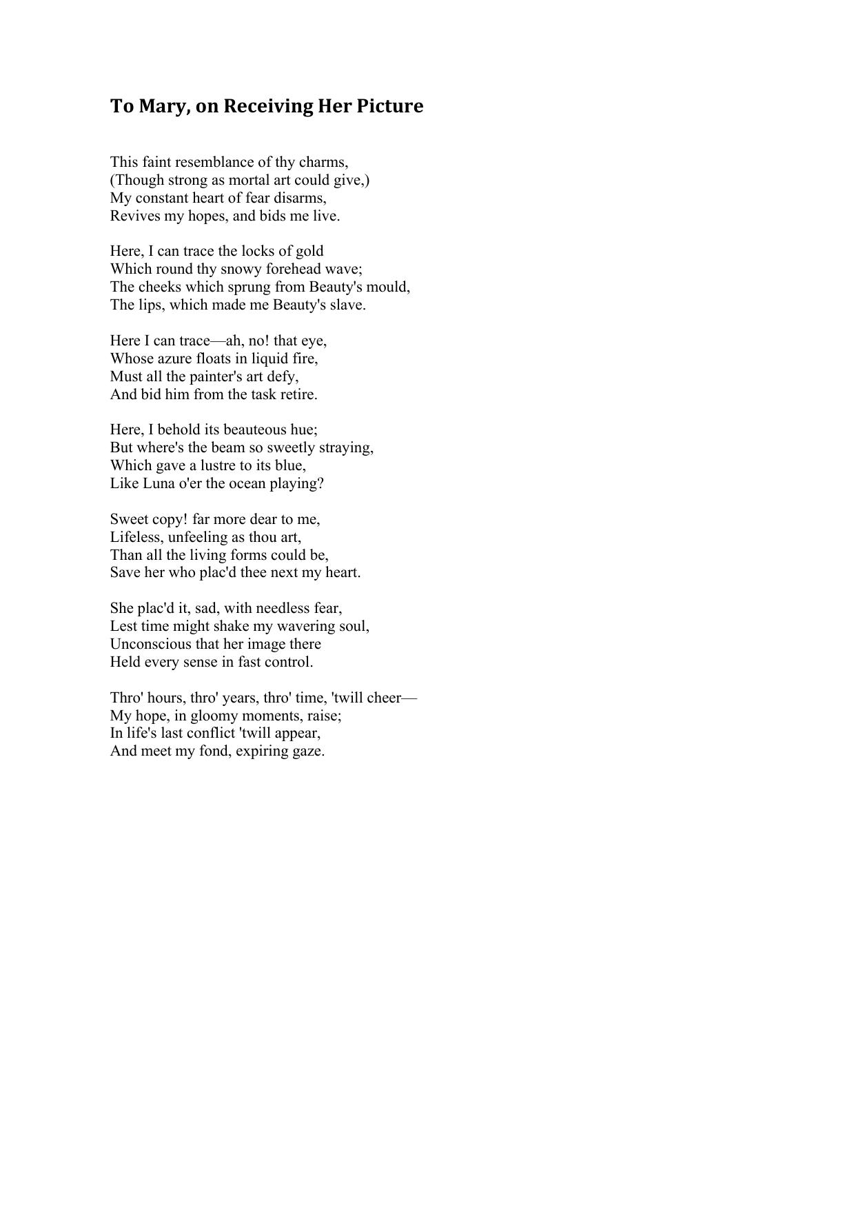 To Mary, on Receiving Her Picture