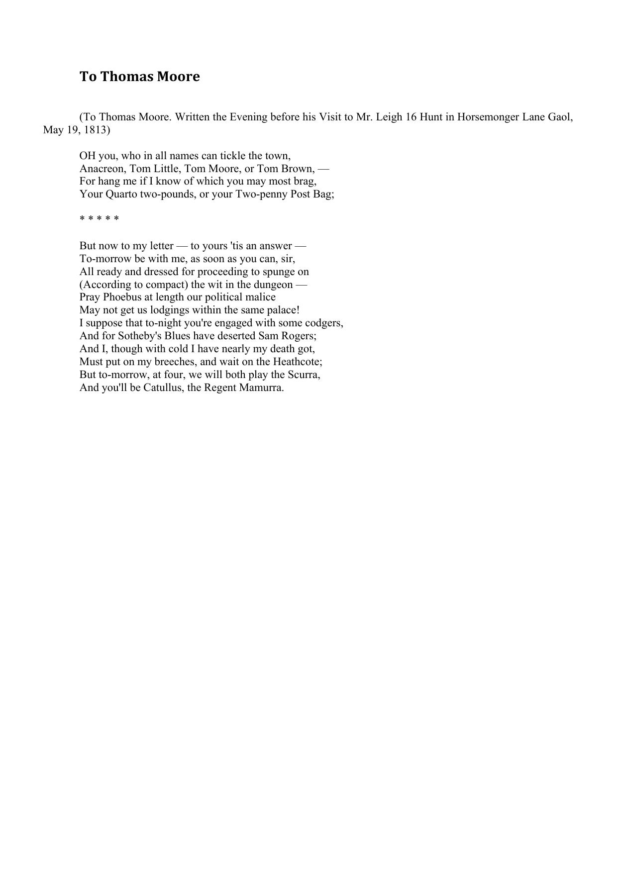 To Thomas Moore (Oh you, who in all names can tickle the town)