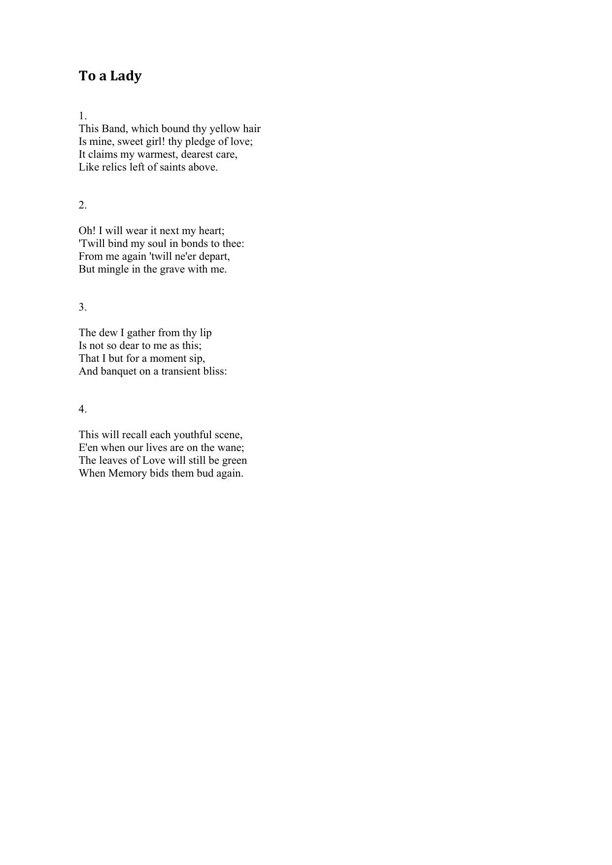 To a Lady (This Band, which bound thy yellow hair)
