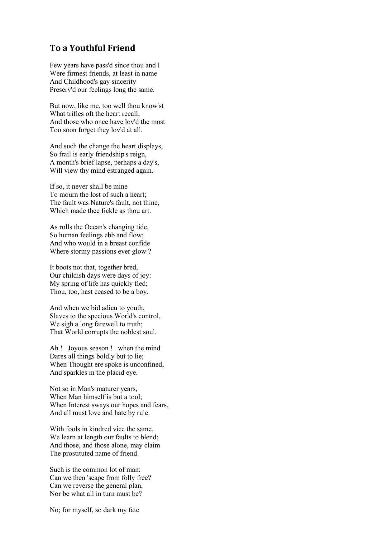 To a Youthful Friend