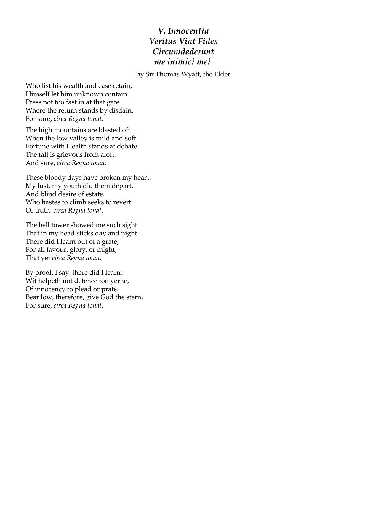 V. Innocentia Veritas Viat Fides Circumdederunt me inimici mei