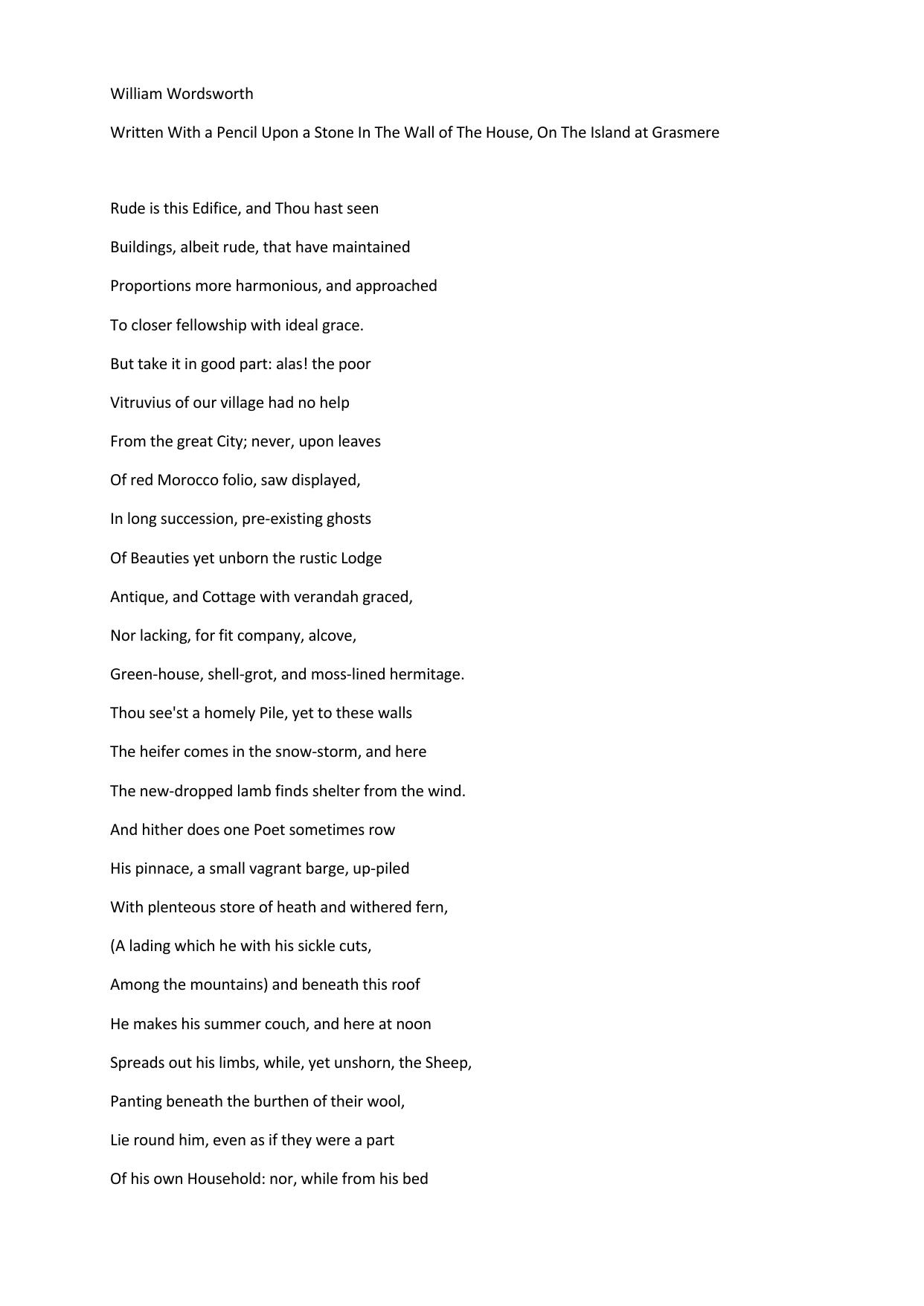 Written With a Pencil Upon a Stone In The Wall of The House, On The Island at Grasmere