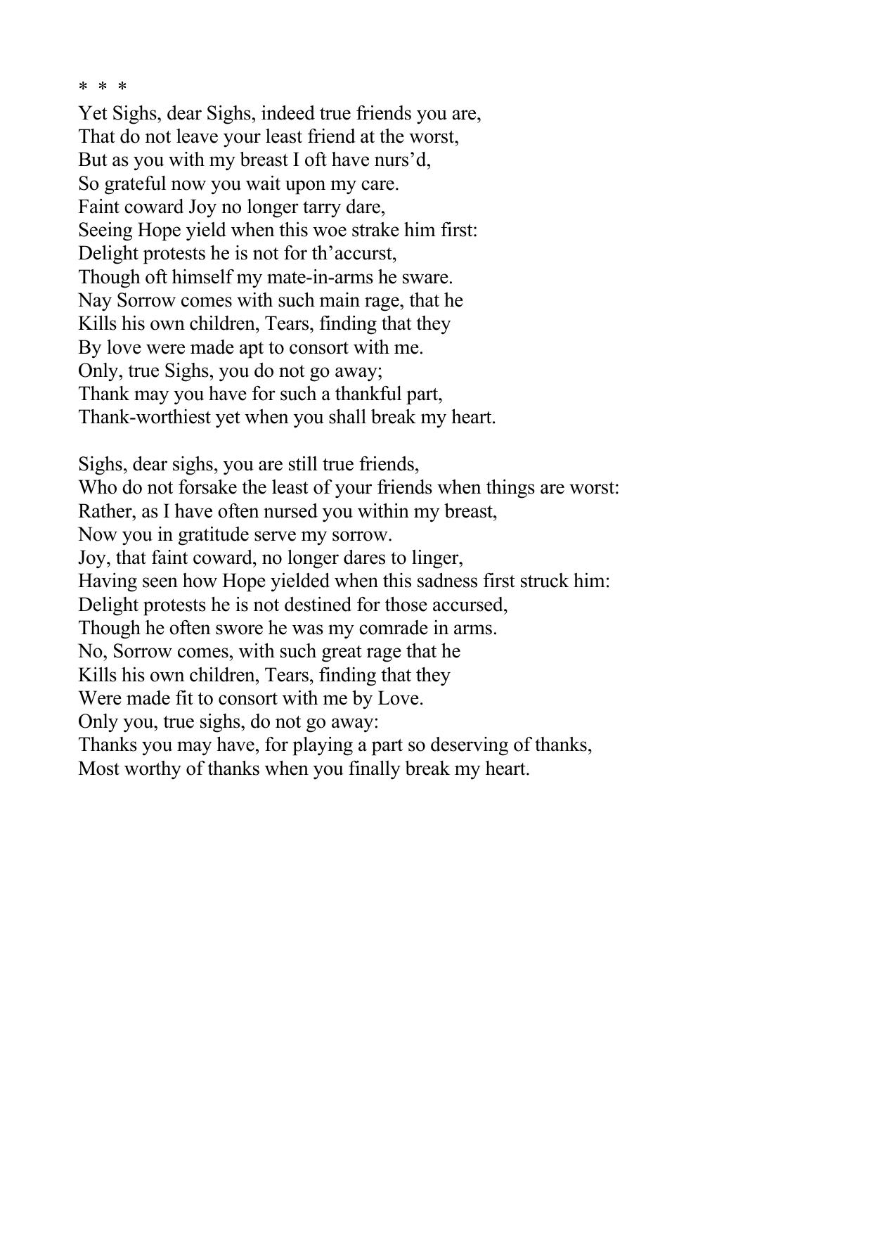 Yet Sighs, dear Sighs, indeed true friends you are