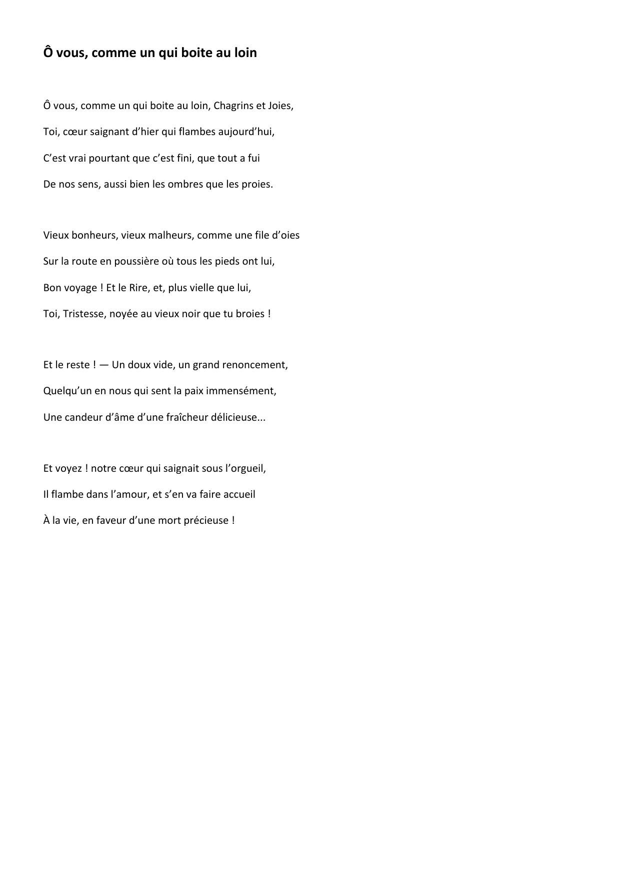 Ô vous, comme un qui boite au loin