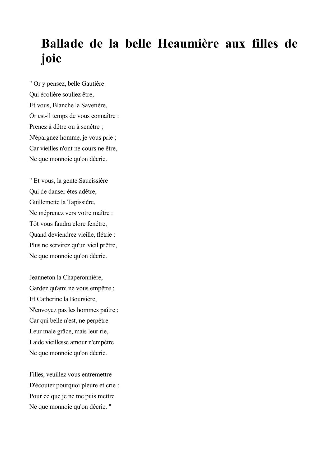 Ballade de la belle Heaumiere aux filles de joie