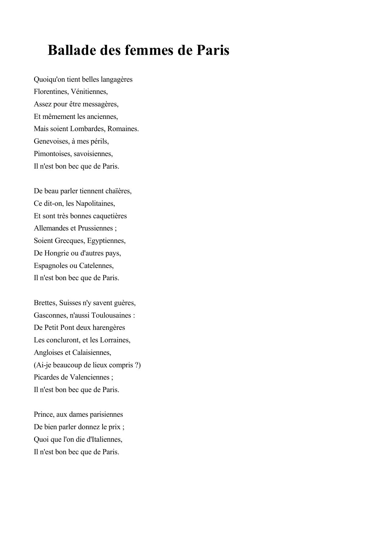 Ballade des femmes de Paris