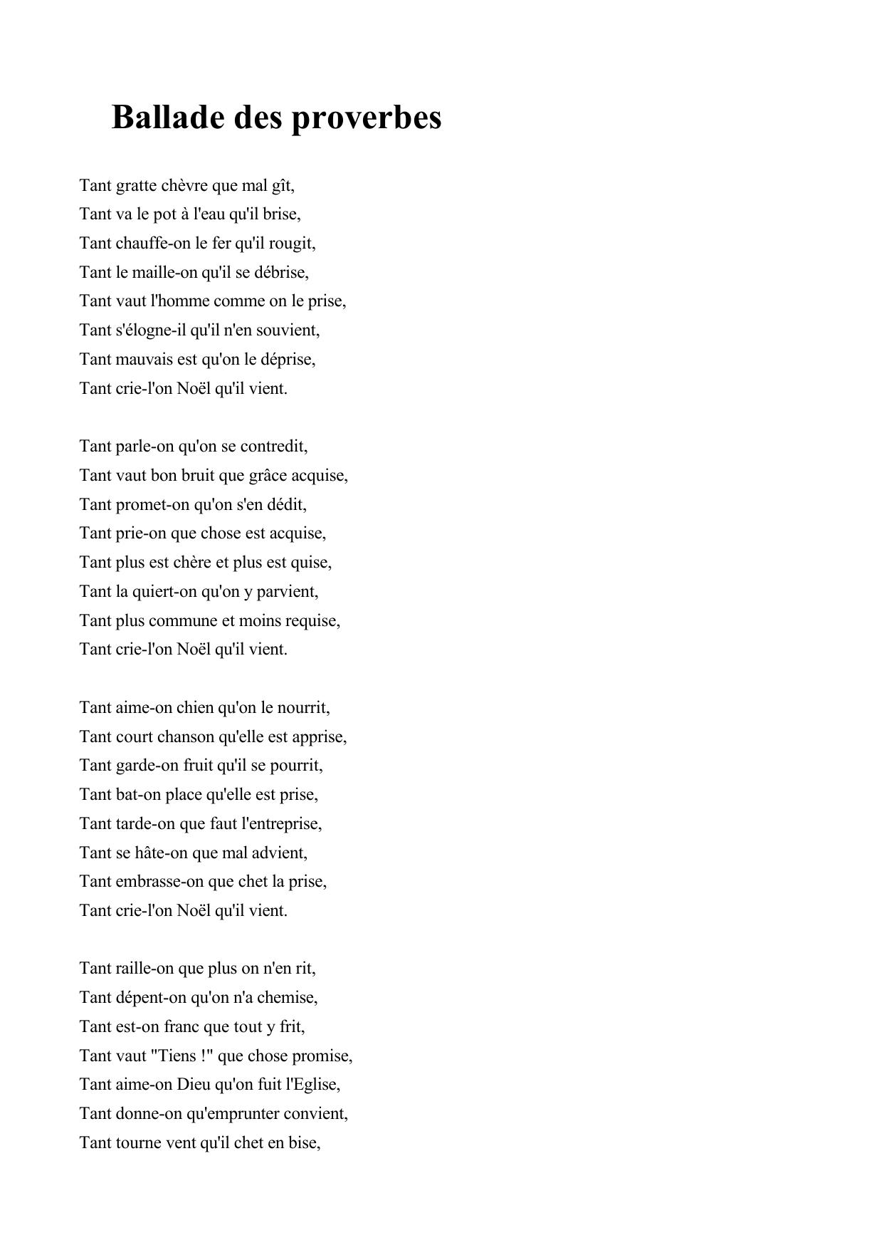 Ballade des proverbes