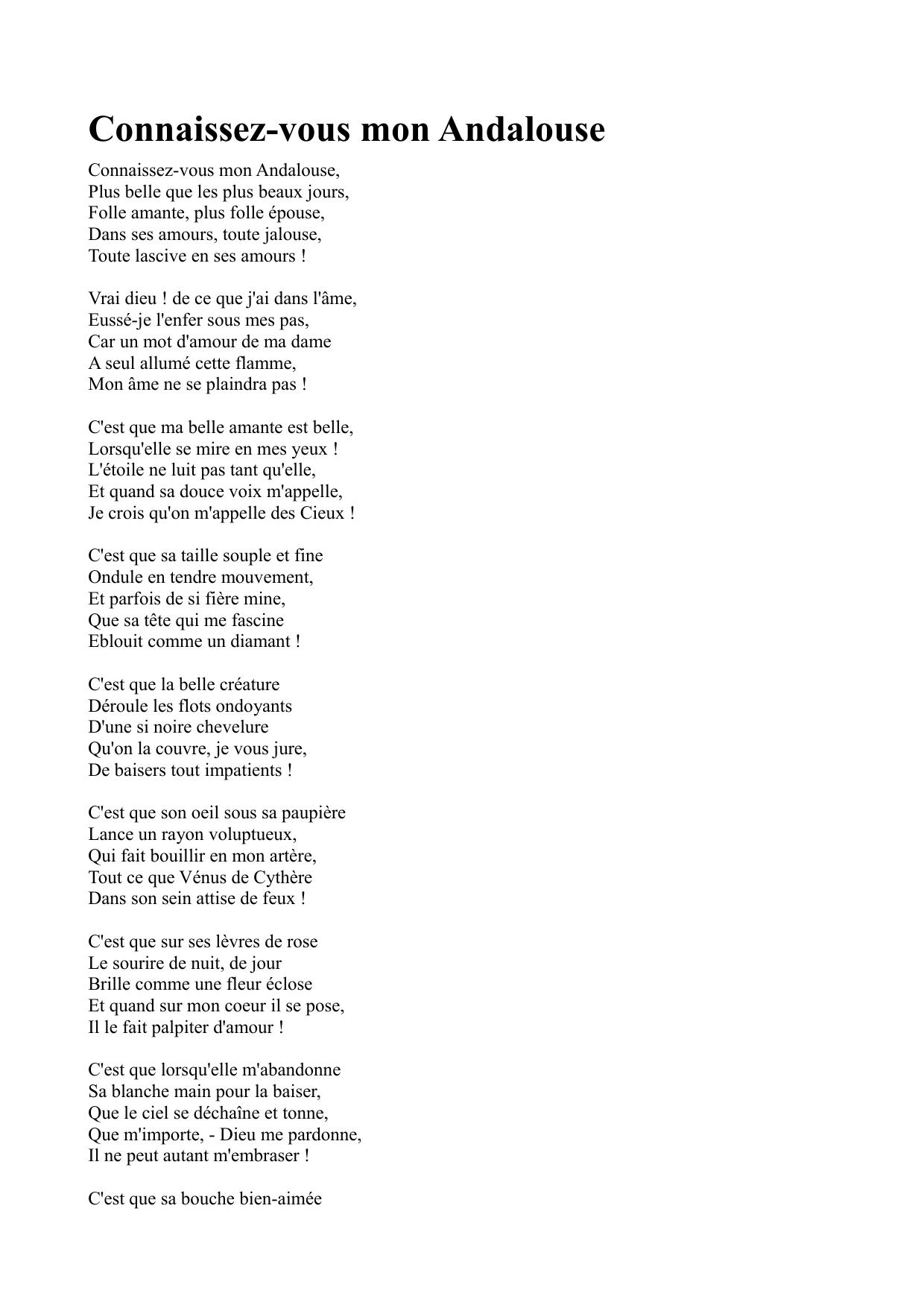 Connaissez-vous mon Andalouse