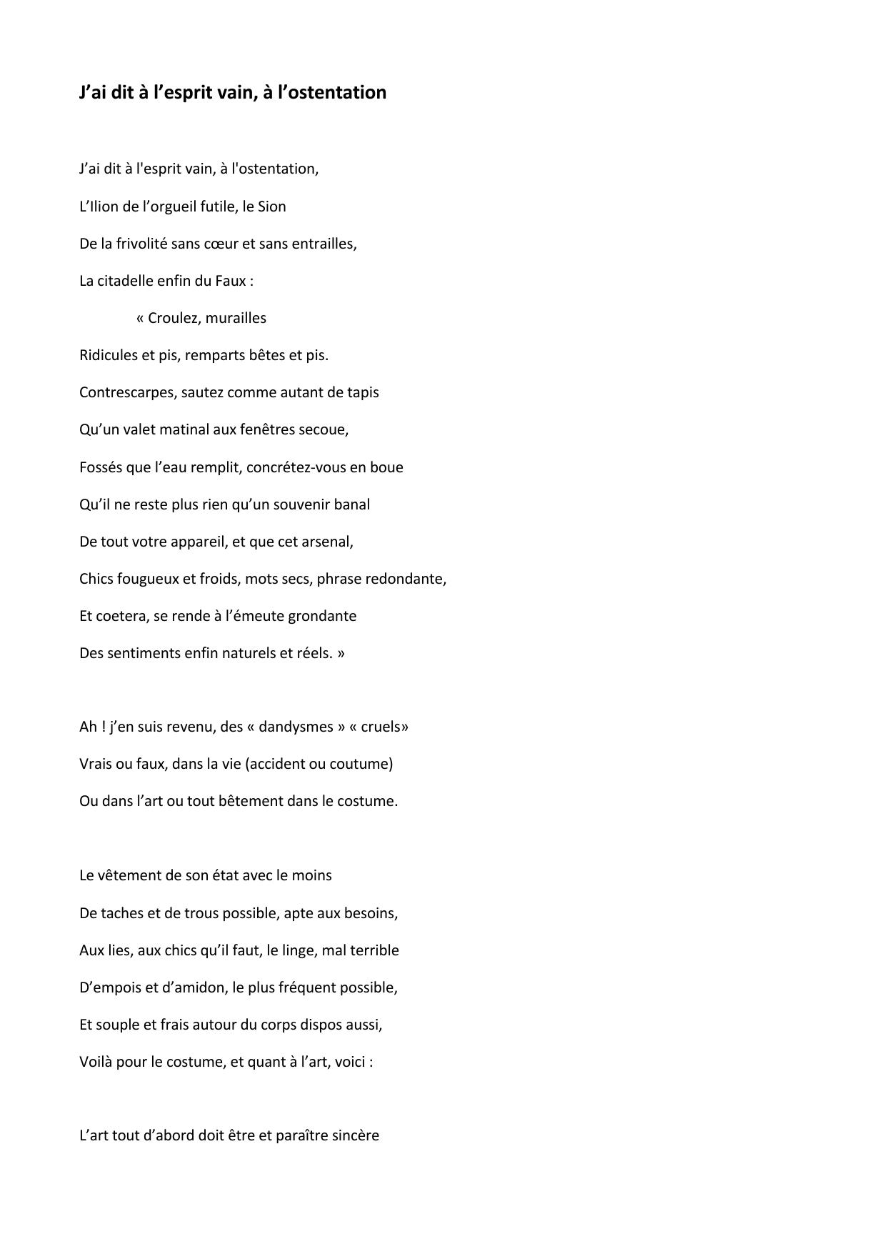 J’ai dit a l’esprit vain, a l’ostentation