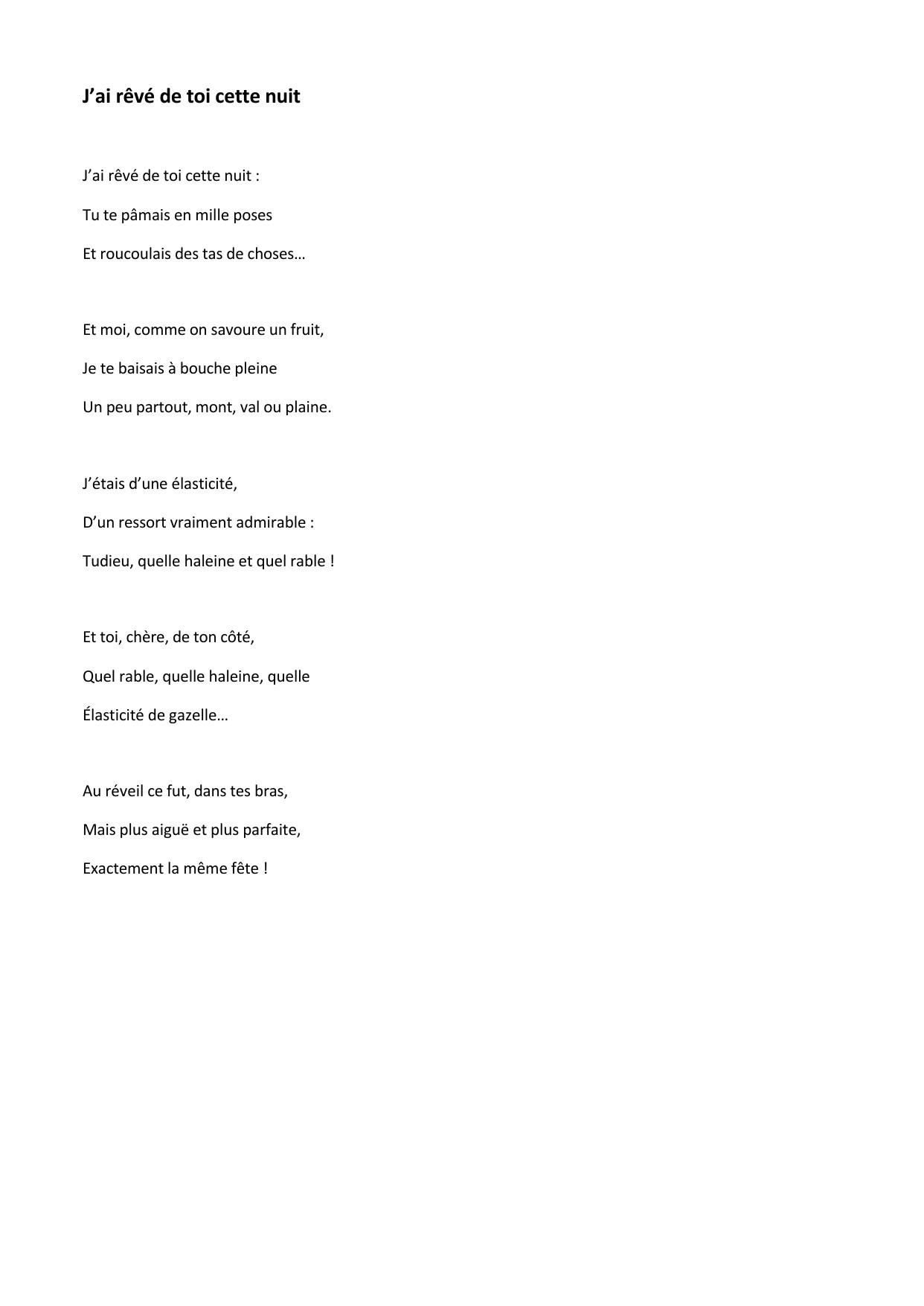 J’ai reve de toi cette nuit