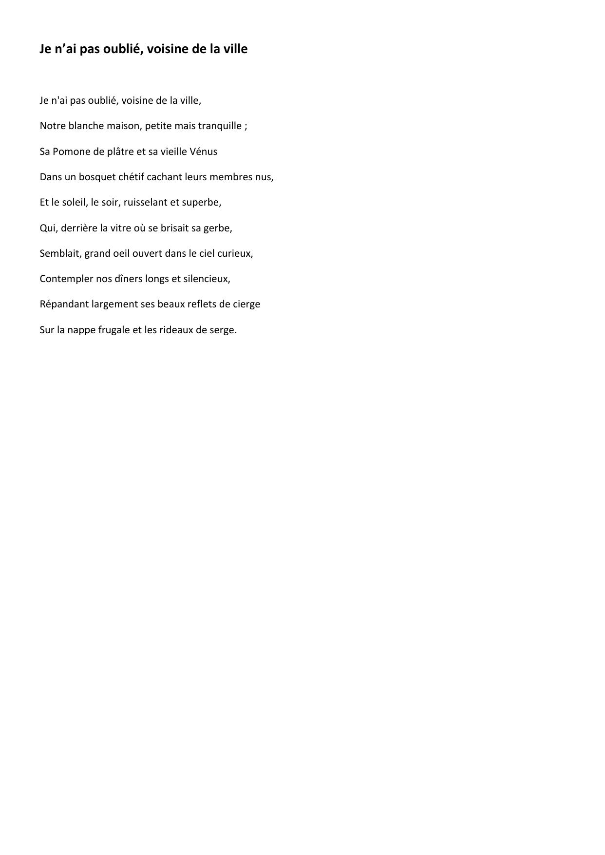 Je n’ai pas oublie, voisine de la ville