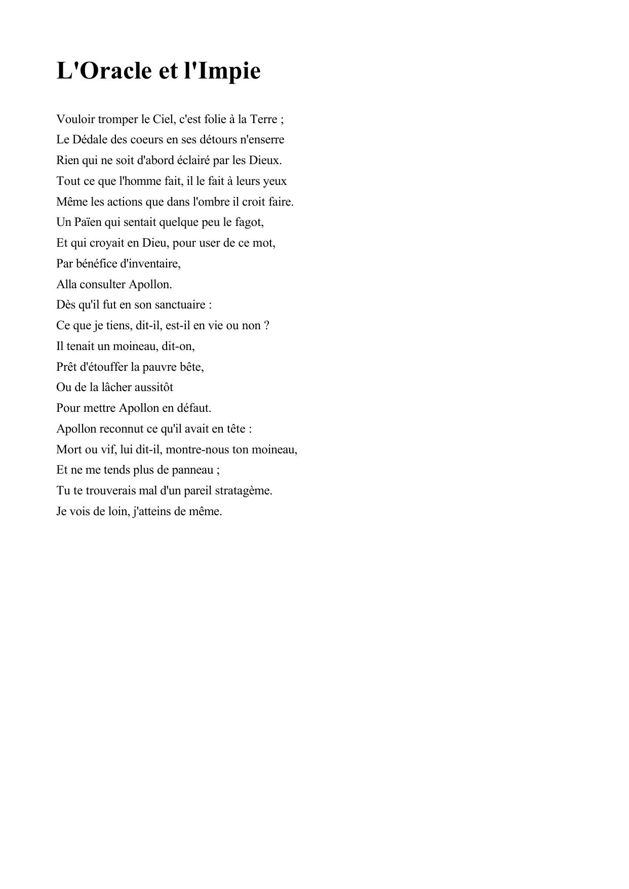 L'Oracle et l'Impie