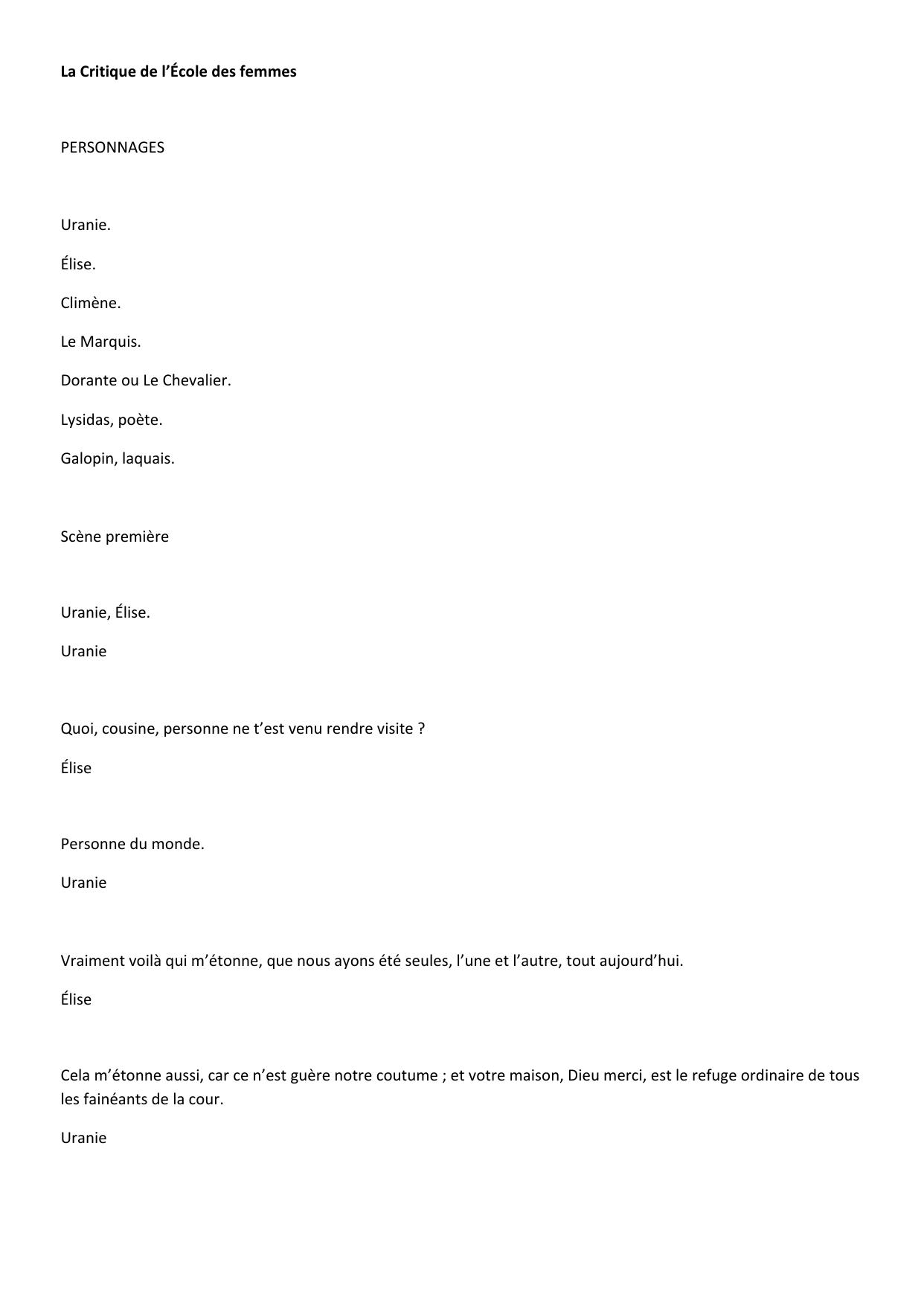 La Critique de l’Ecole des femmes