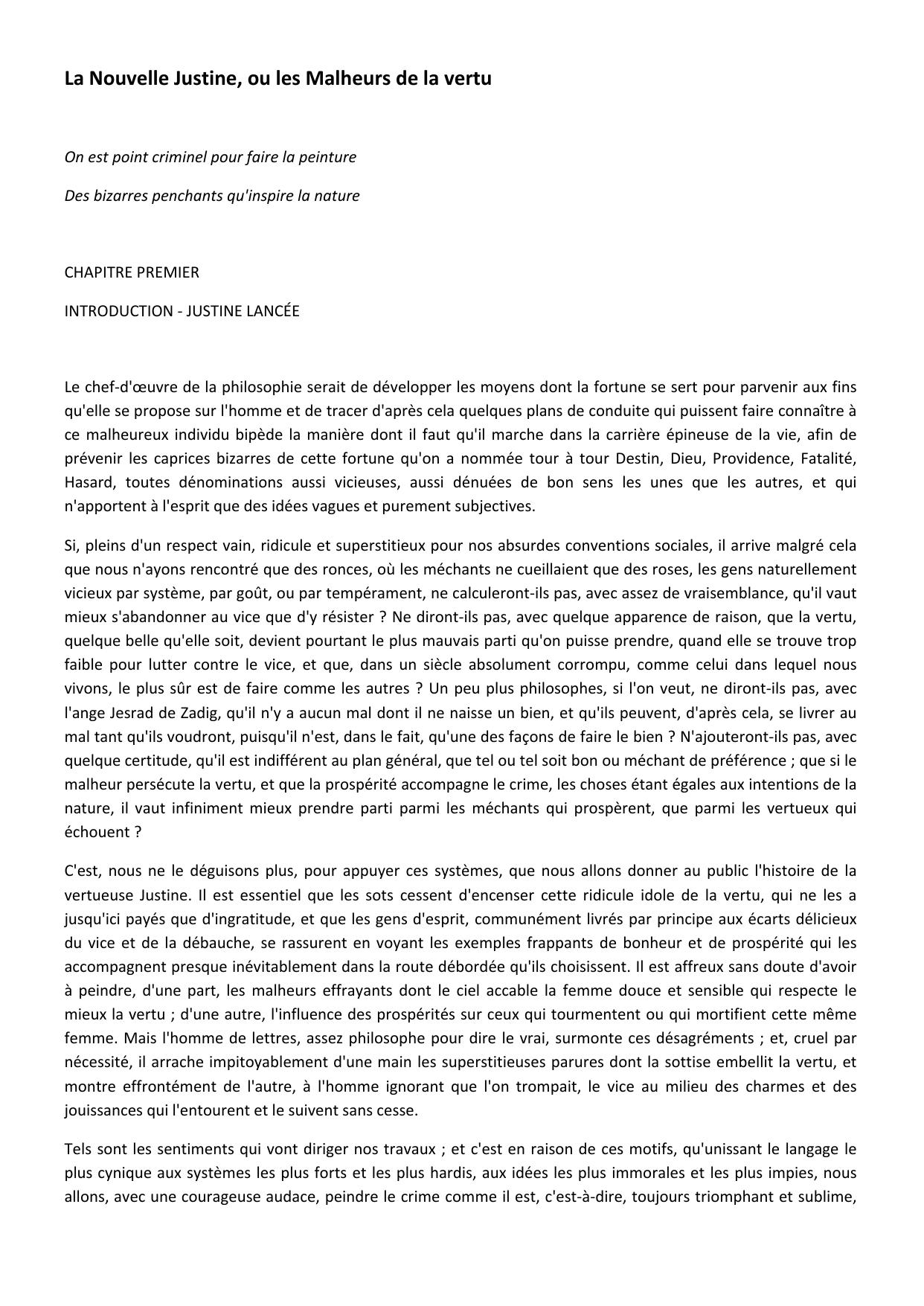 La Nouvelle Justine, ou les Malheurs de la vertu