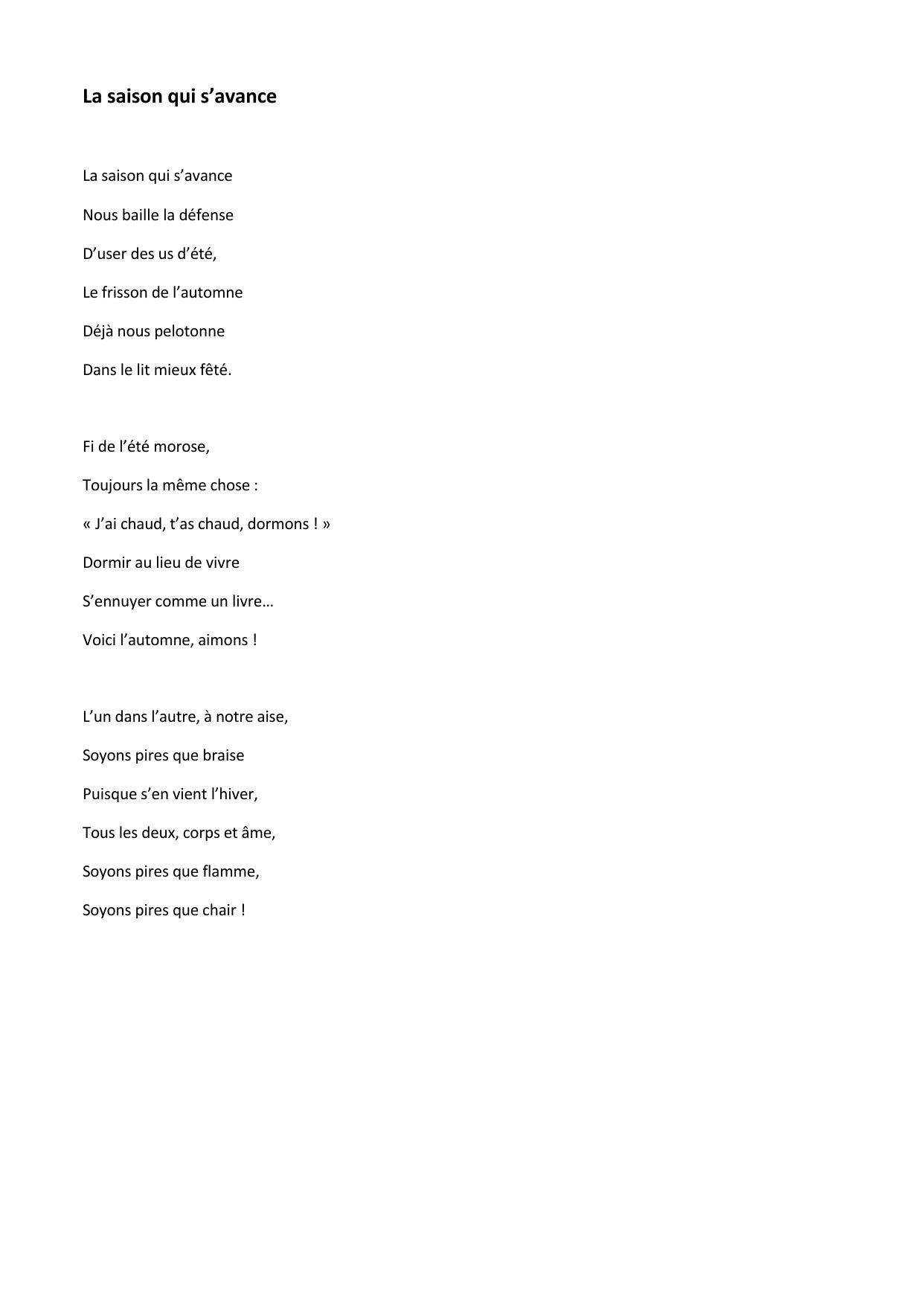 La saison qui s’avance