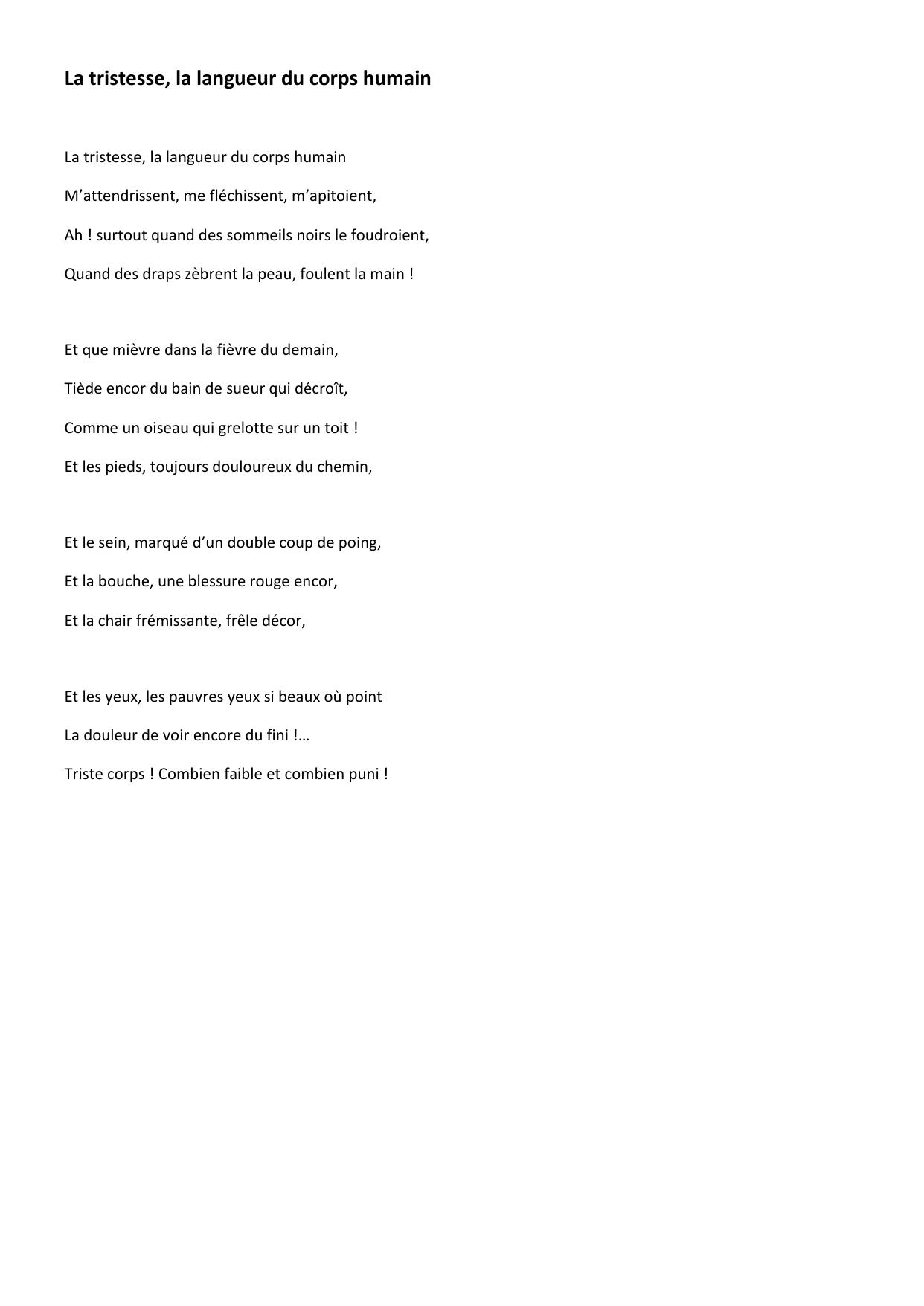 La tristesse, la langueur du corps humain