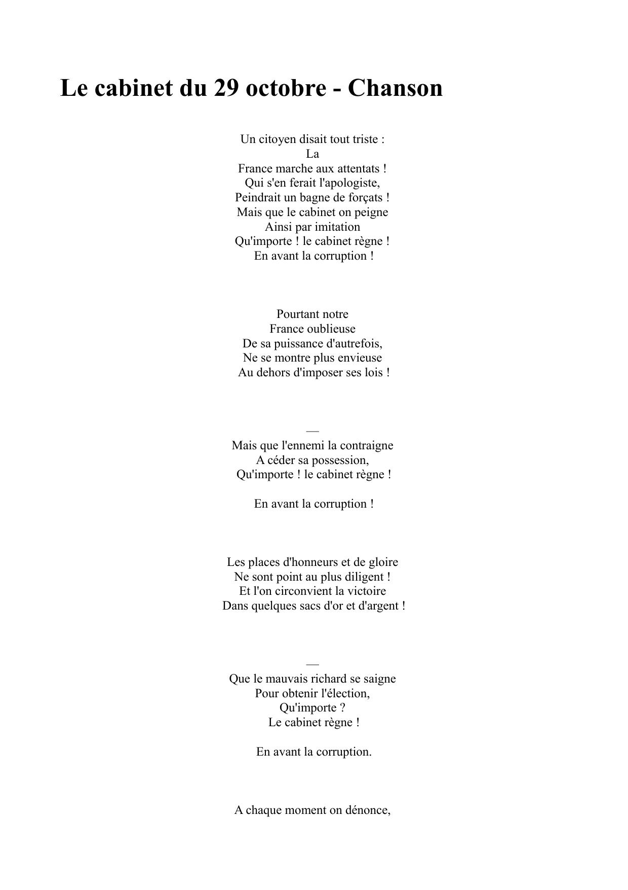Le Cabinet du 29 octobre. Chanson