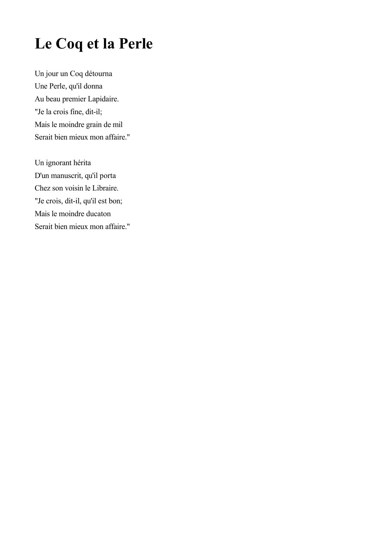 Le Coq et la Perle