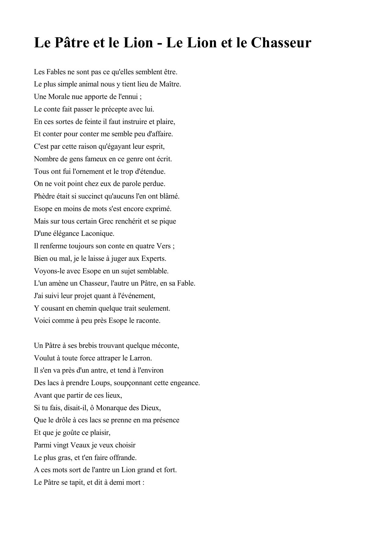 Le Patre et le Lion - Le Lion et le Chasseur