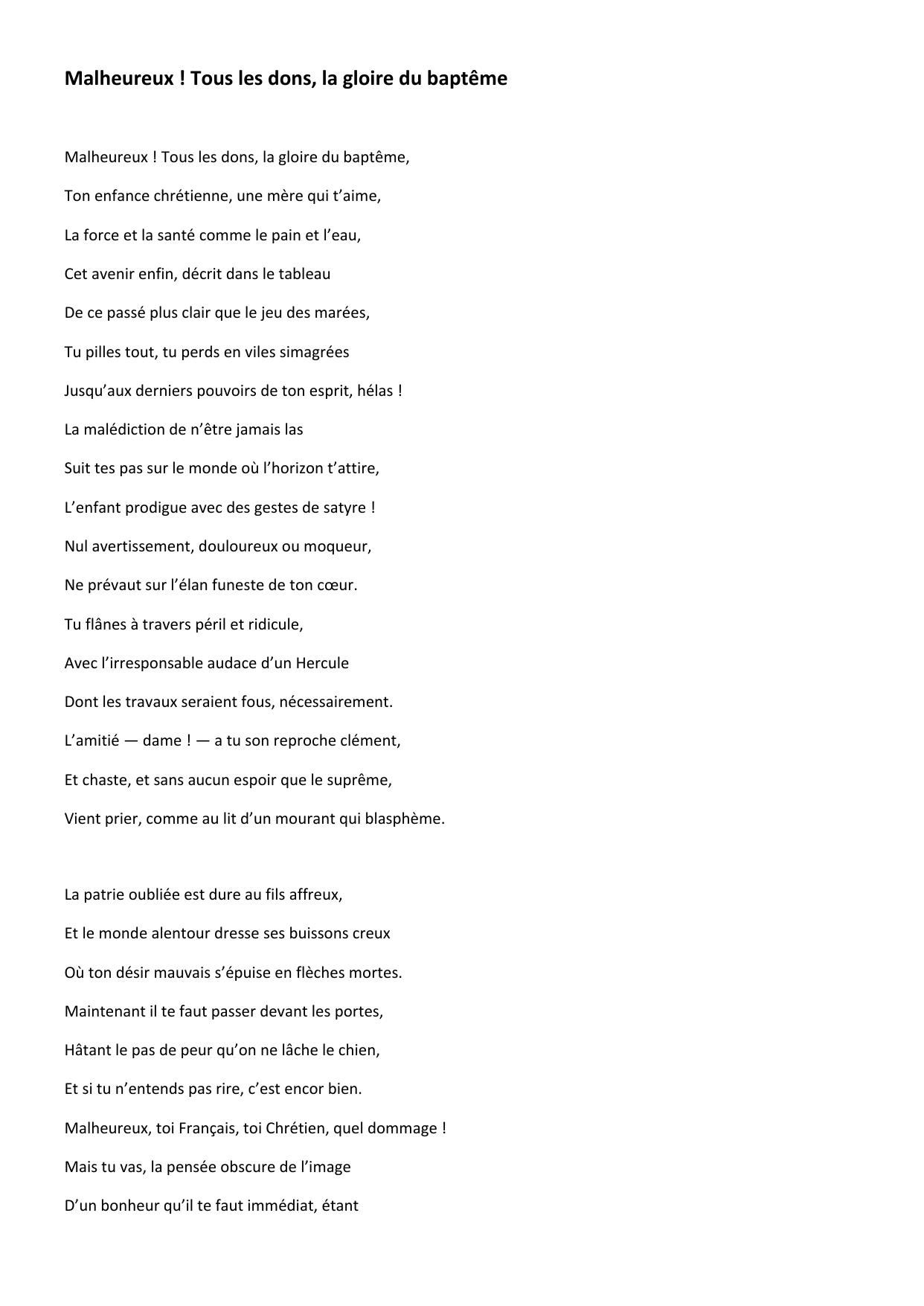 Malheureux ! Tous les dons, la gloire du baptême