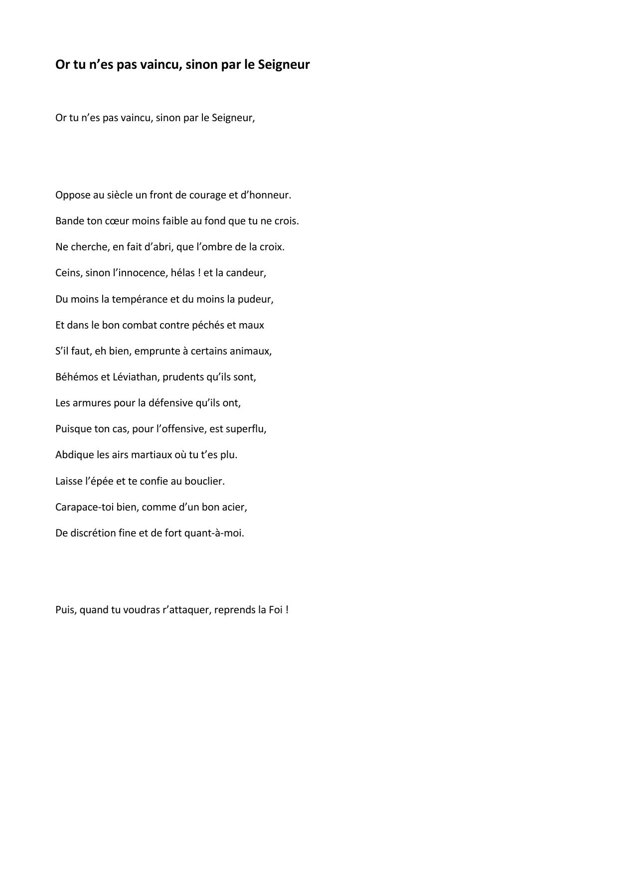 Or tu n’es pas vaincu, sinon par le Seigneur