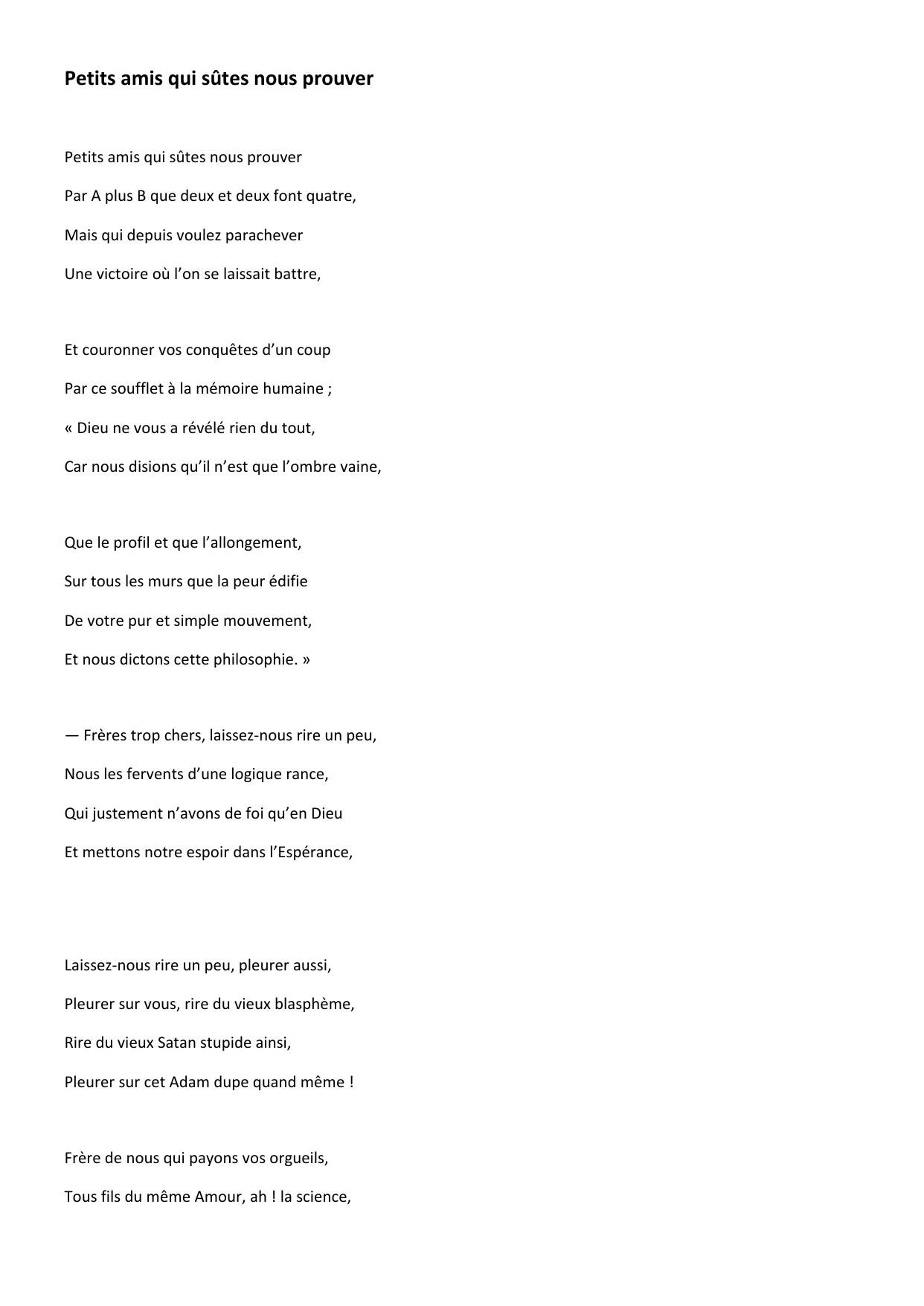 Petits amis qui sûtes nous prouver