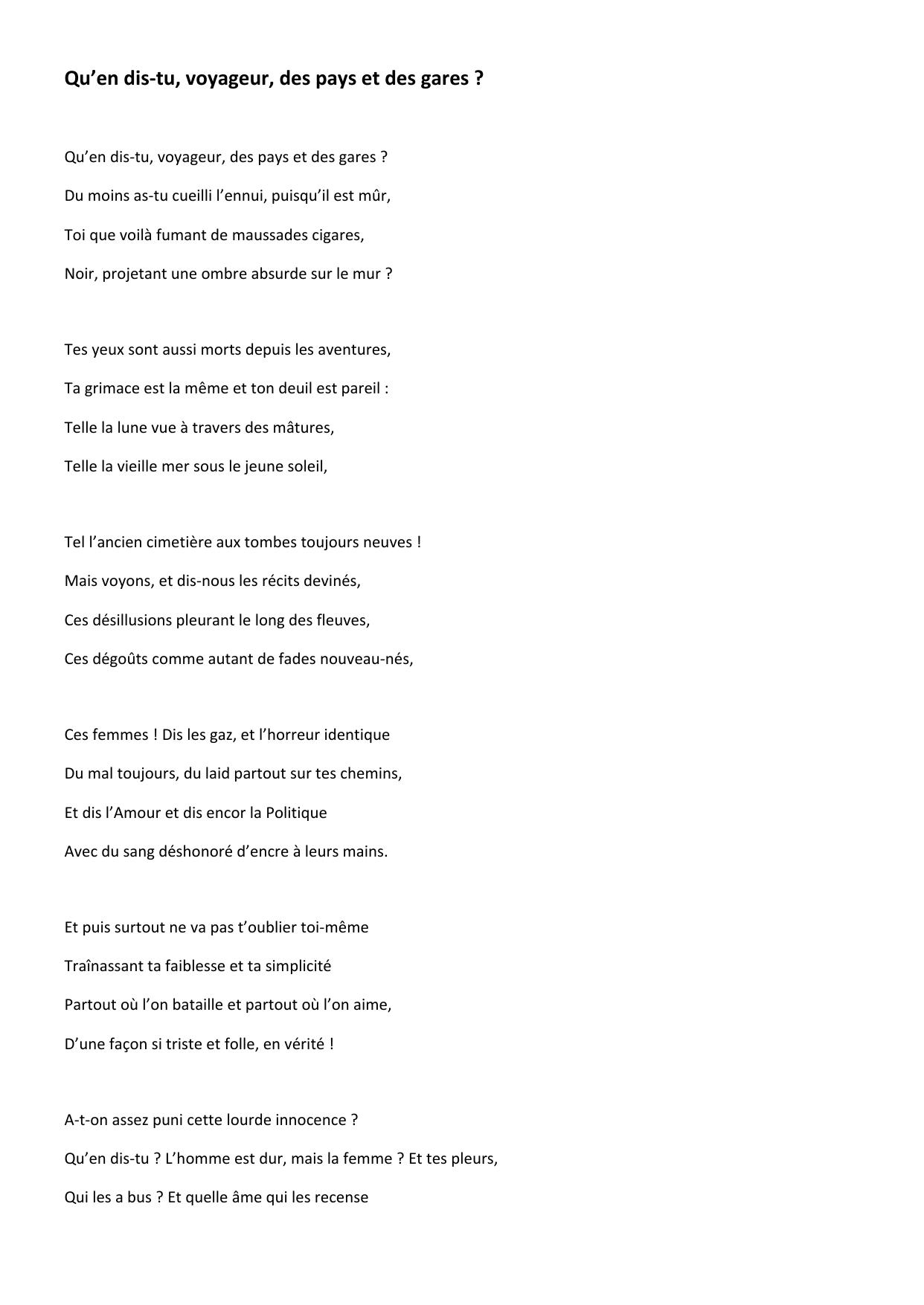 Qu’en dis-tu, voyageur, des pays et des gares ?