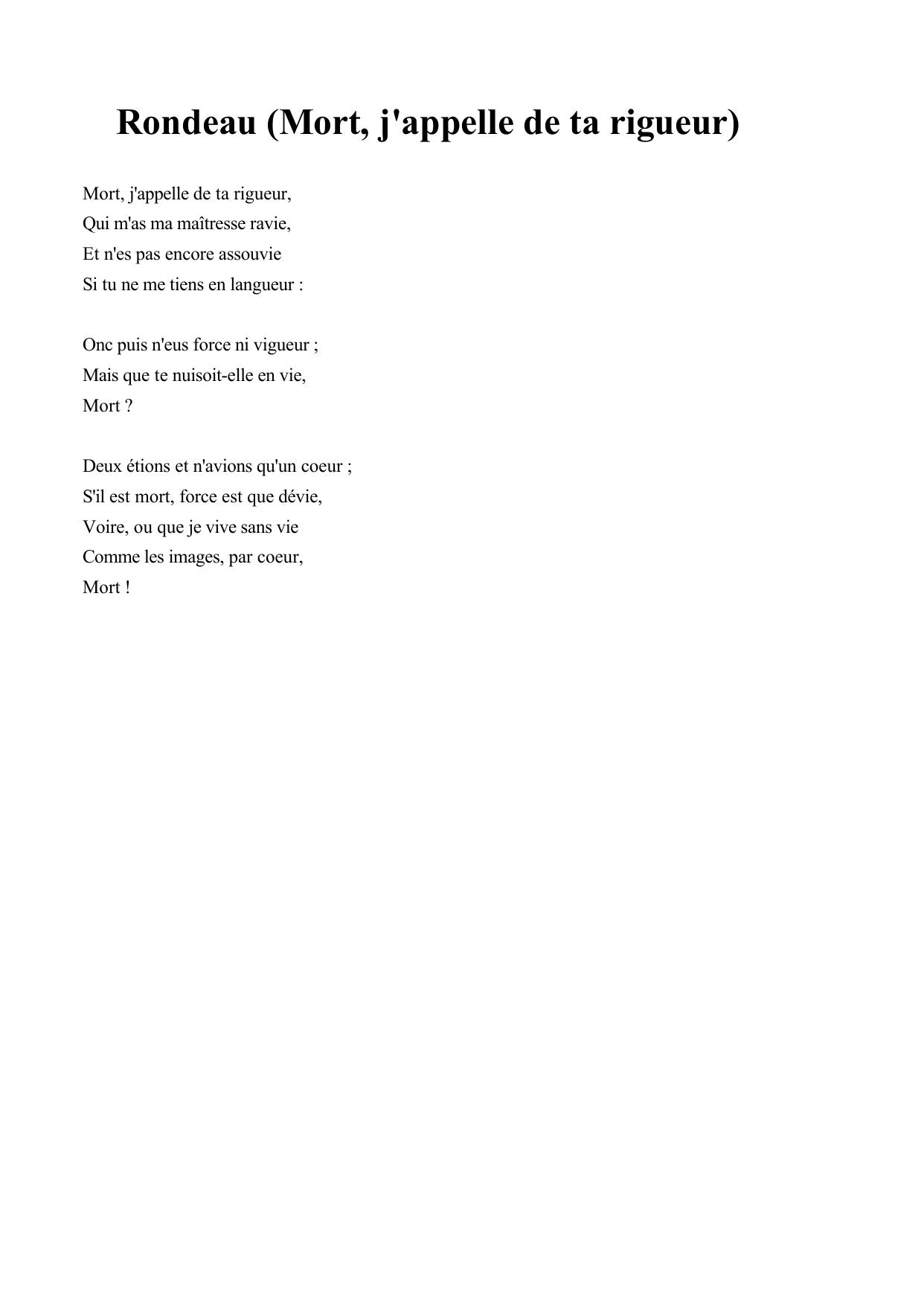 Rondeau (Mort, j'appelle de ta rigueur)