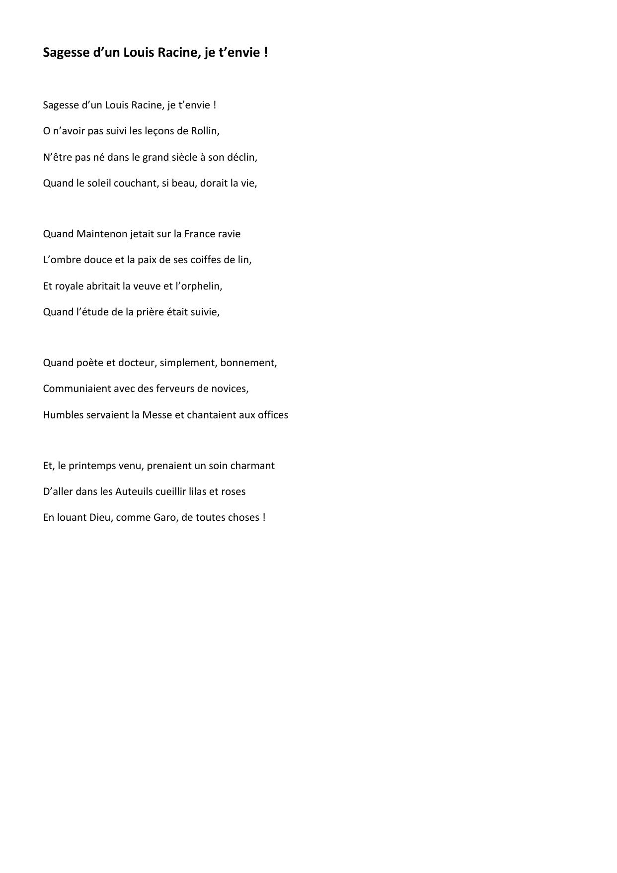 Sagesse d’un Louis Racine, je t’envie !