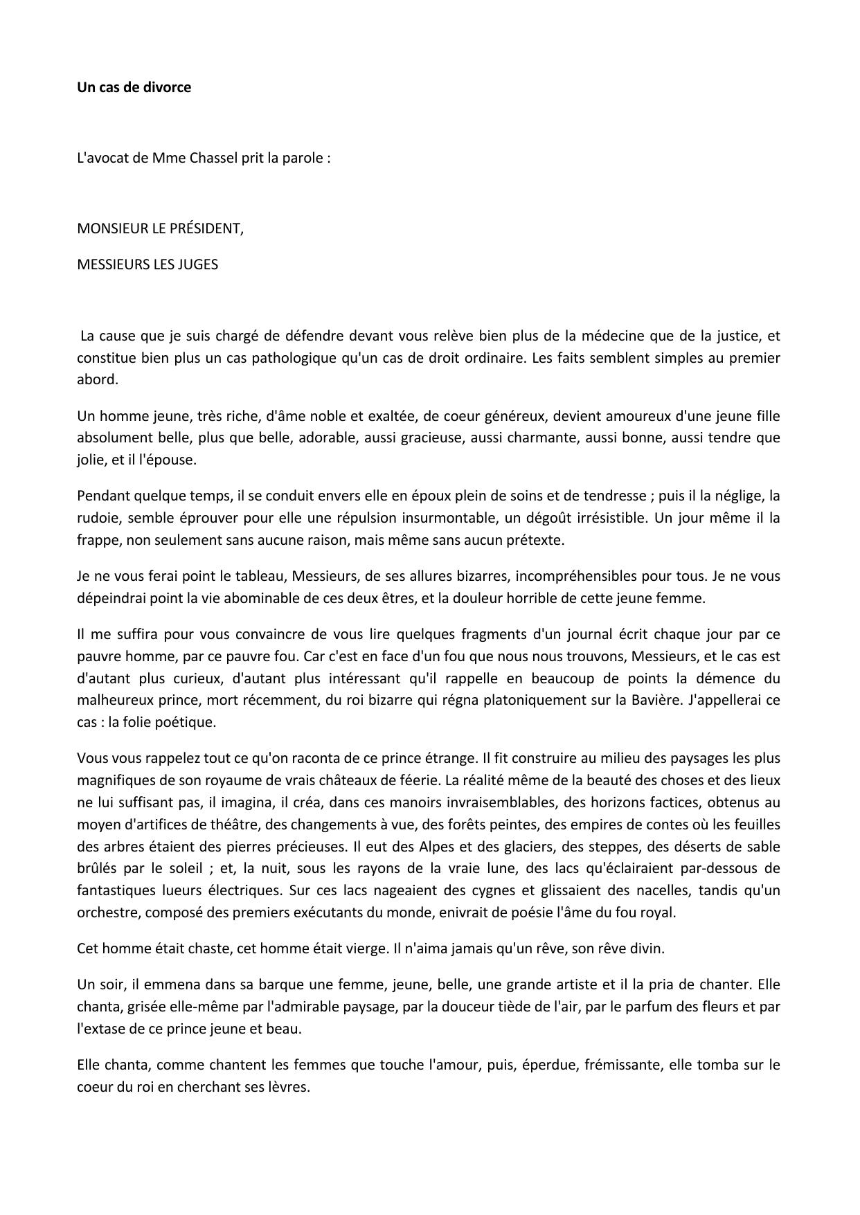 Un cas de divorce