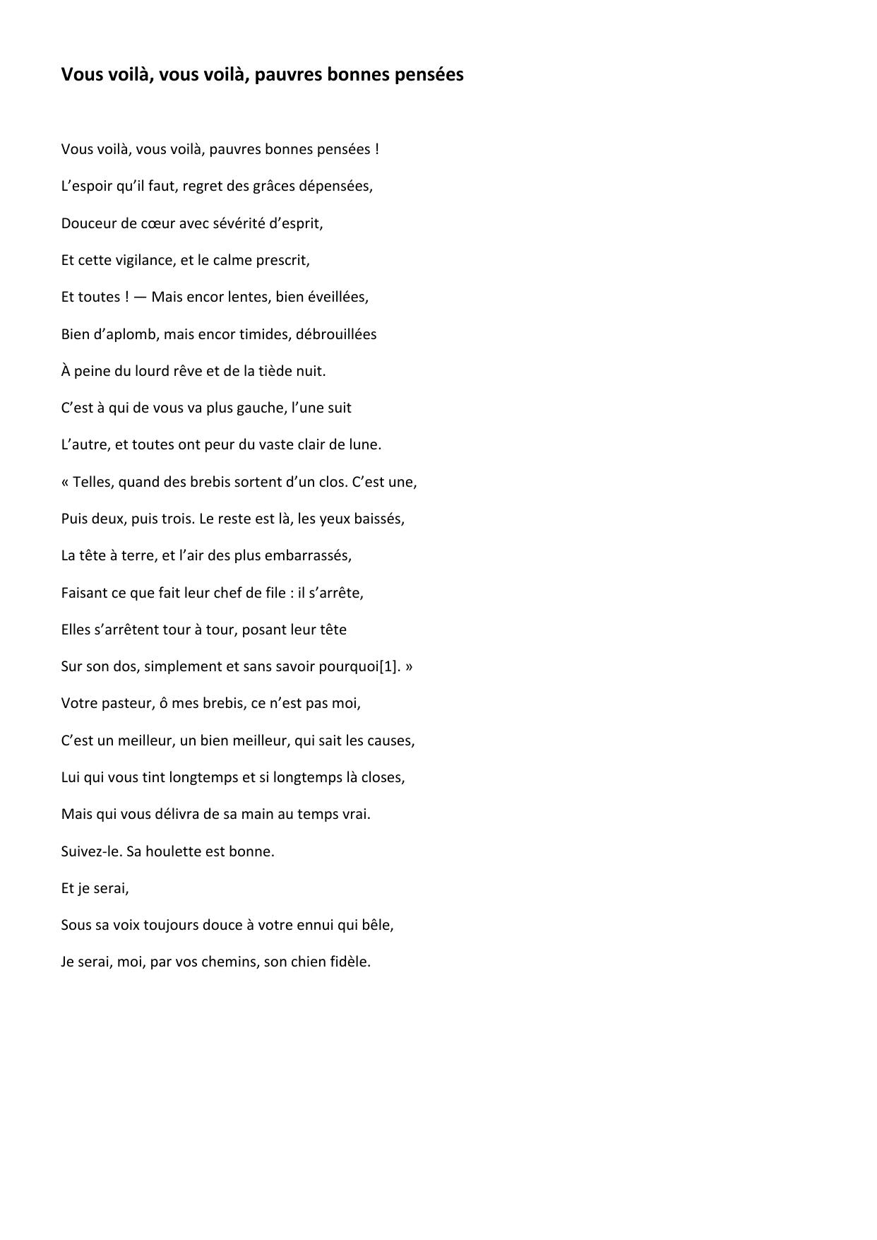Vous voilà, vous voilà, pauvres bonnes pensées