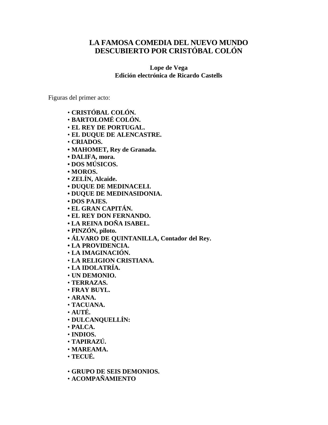 La famosa comedia del nuevo mundo descubierto por cristobal colon