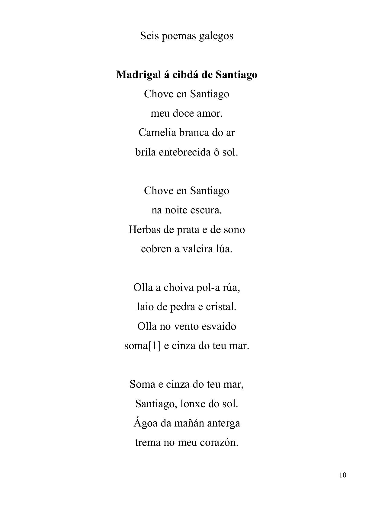 Seis poemas galegos Madrigal á cibdá de Santiago