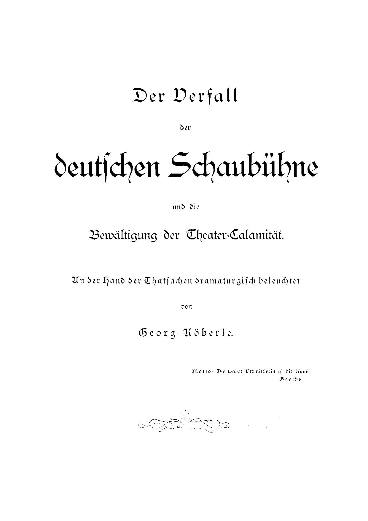Der Verfall der deutschen Schaubühne und die Bewältigung der Theaterkalamität