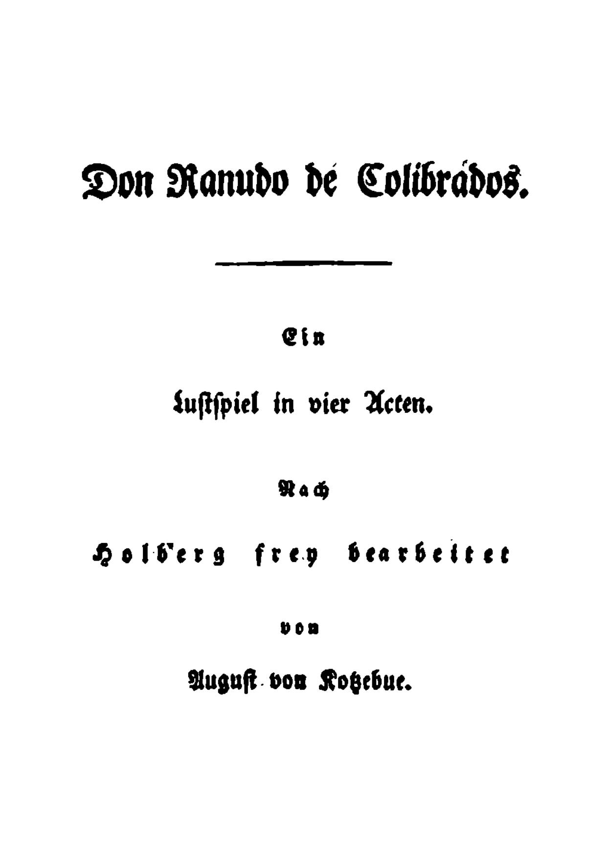 Don Ranudo de Colibrados. Lustspiel in 4 Akten