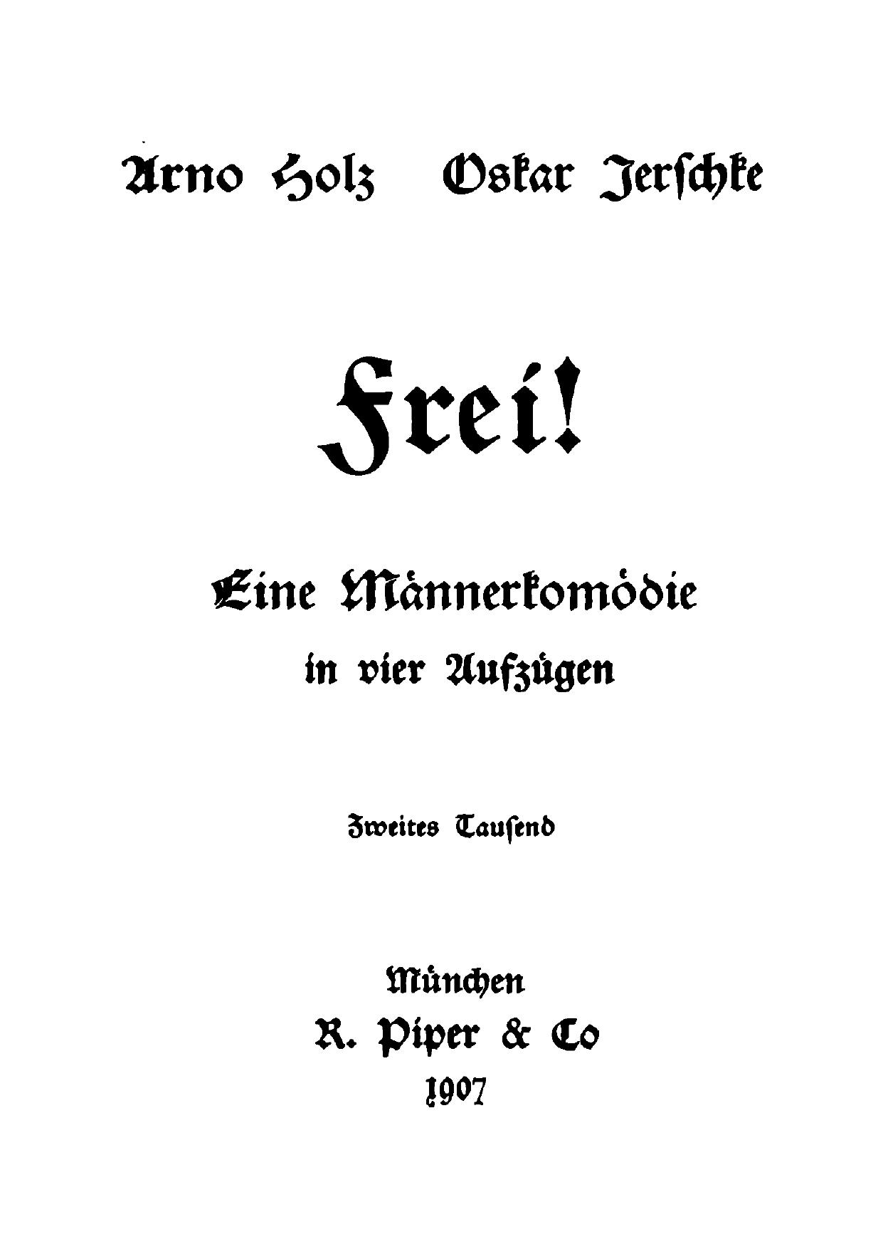 Frei!, Männerkomödie, gemeinsam mit Oskar Jerschke