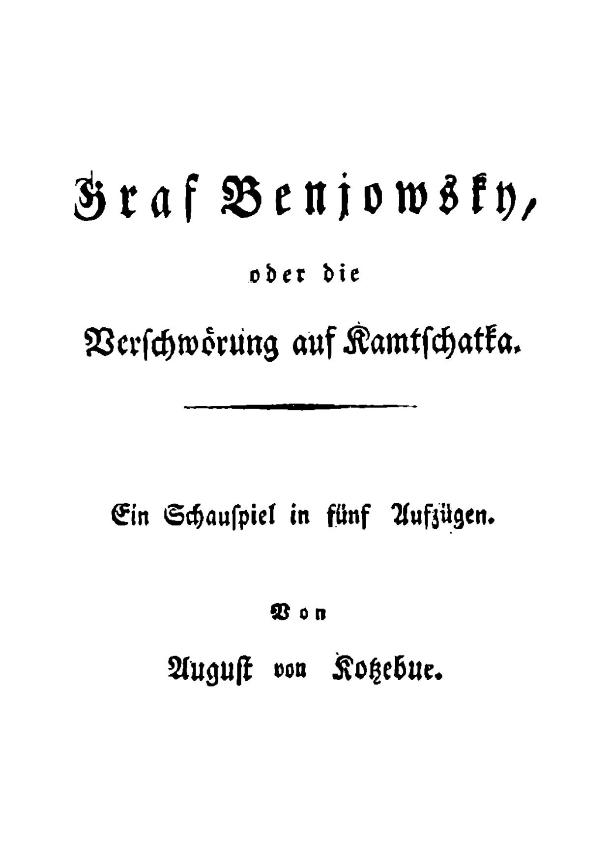 Graf Benjowsky oder die Verschwörung auf Kamtschatka. Ein Schauspiel in fünf Aufzügen