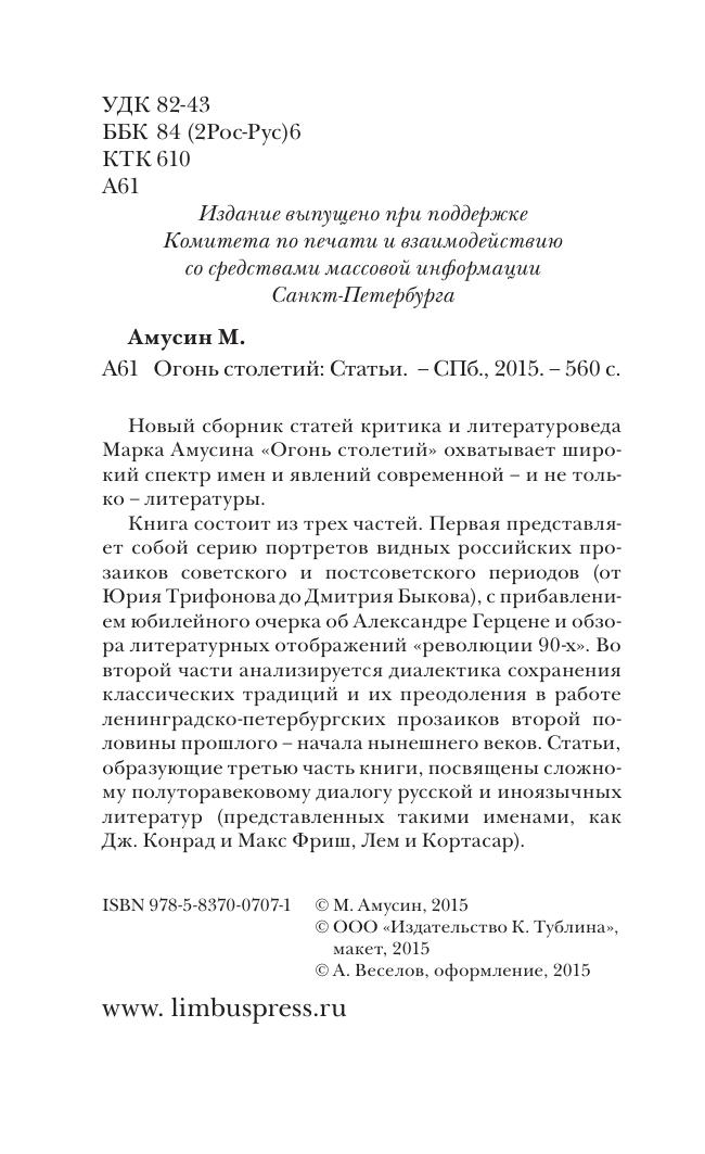 Новый сборник статей критика и литературоведа Марка Амусина «Огонь столетий» охватывает широкий спектр имен и явлений современной – и не только – литературы.