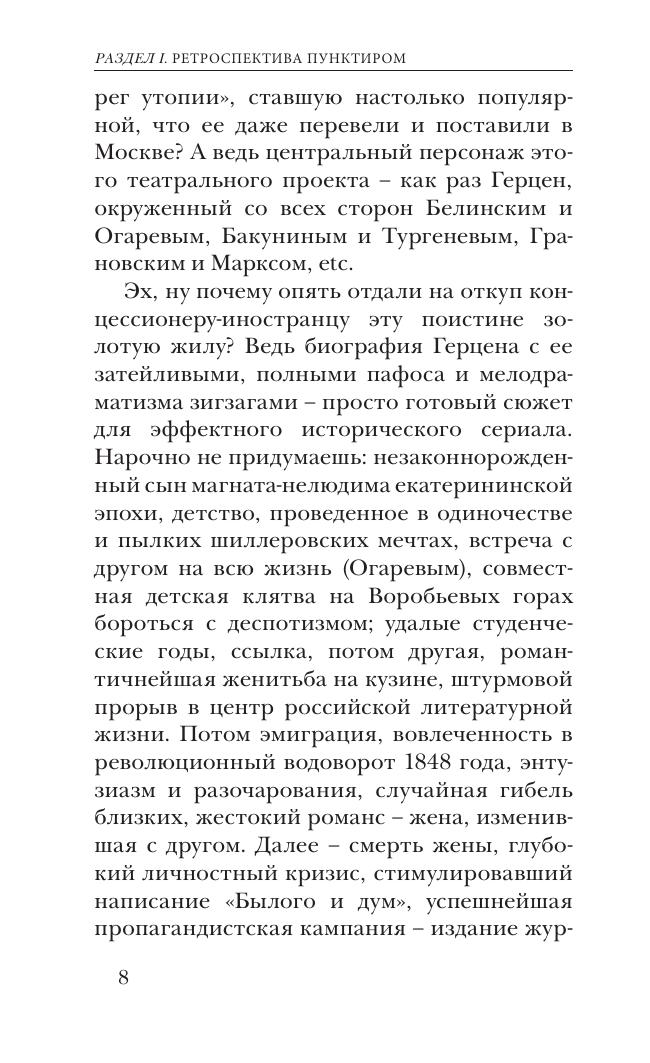 Книга состоит из трех частей. Первая представляет собой серию портретов видных российских прозаиков советского и постсоветского периодов (от Юрия Трифонова до Дмитрия Быкова), с прибавлением юбилейного очерка об Александре Герцене и обзора литературных отображений «революции 90-х». Во второй части анализируется диалектика сохранения классических традиций и их преодоления в работе ленинградско-петербургских прозаиков второй половины прошлого – начала нынешнего веков. Статьи, образующие третью часть книги, посвящены сложному полуторавековому диалогу русской и иноязычных литератур (представленных такими именами, как Дж. Конрад и Макс Фриш, Лем и Кортасар).