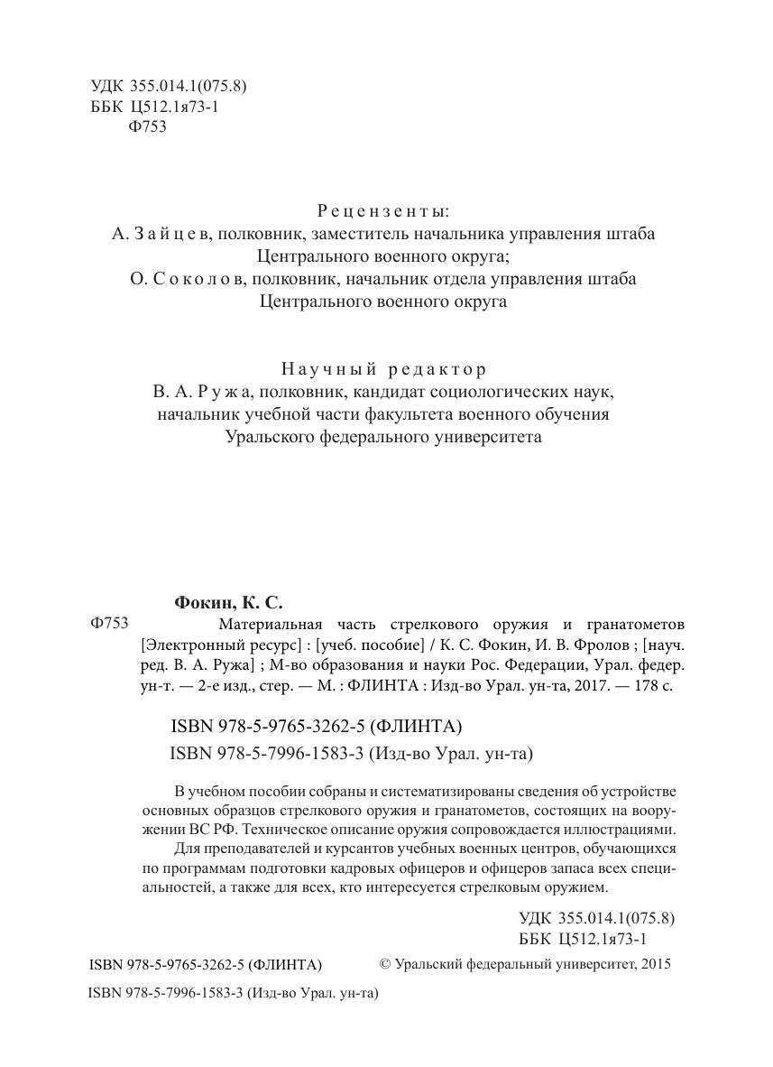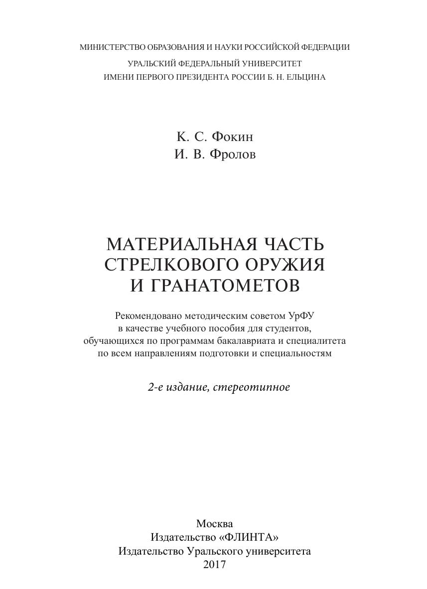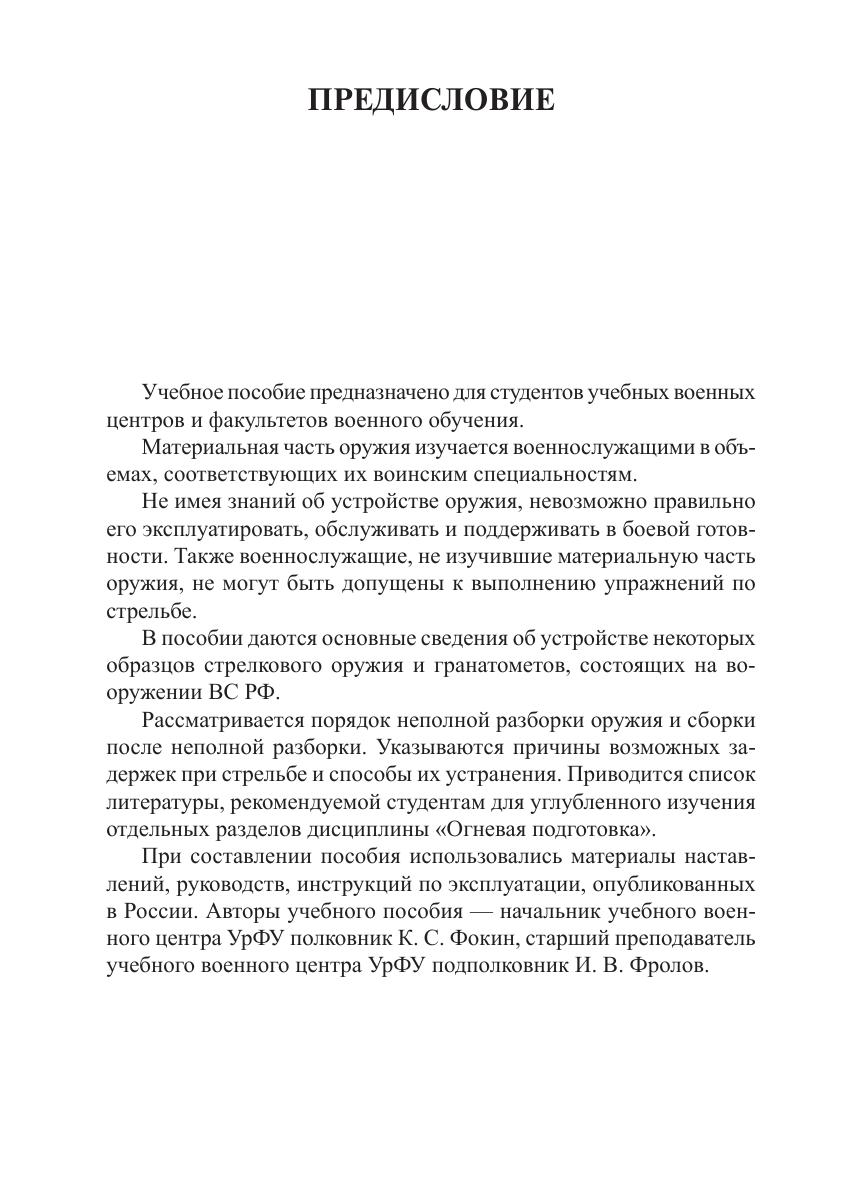 В учебном пособии собраны и систематизированы сведения об устройстве основных образцов стрелкового оружия и гранатометов, состоящих на вооружении ВС РФ. Техническое описание оружия сопровождается иллюстрациями. Для преподавателей и курсантов учебных военных центров, обучающихся по программам подготовки кадровых офицеров и офицеров запаса всех специальностей, а также для всех, кто интересуется стрелковым оружием.