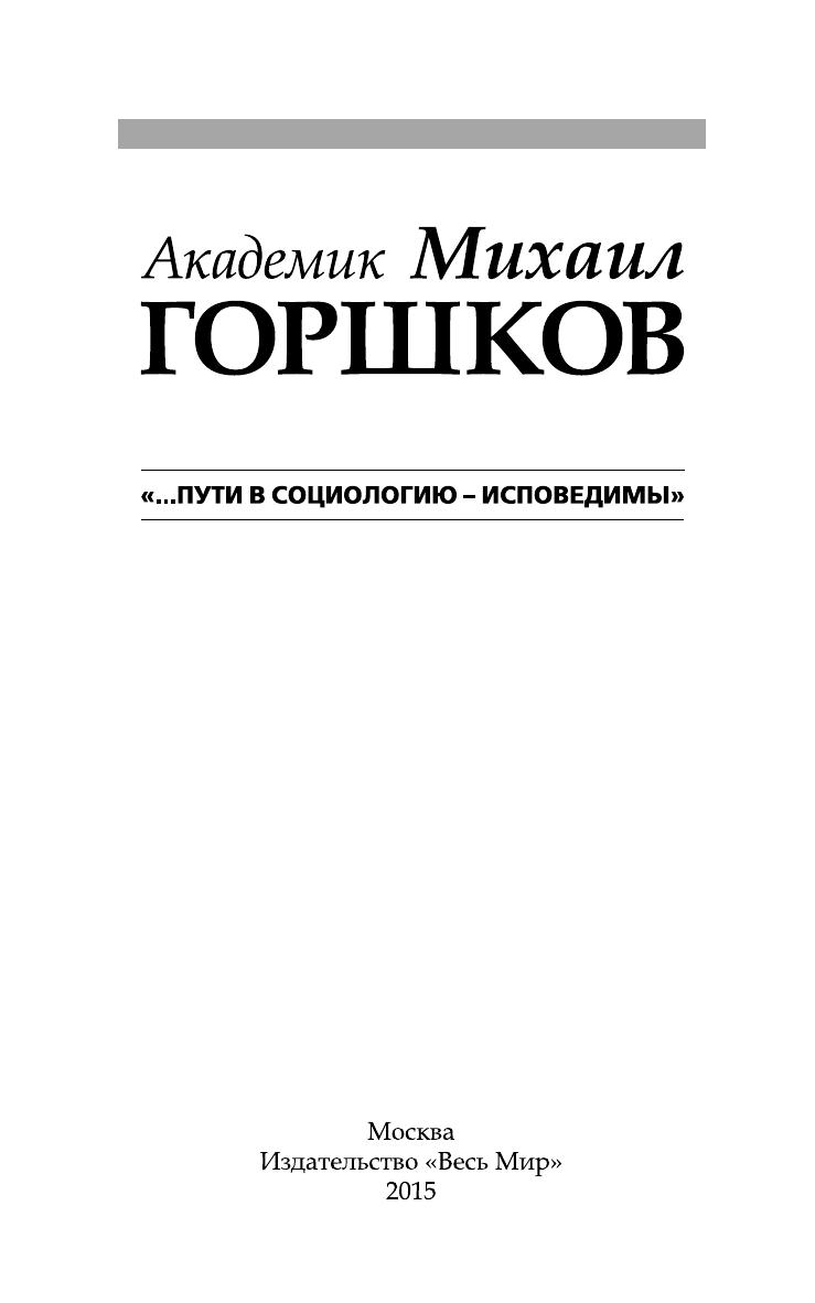 Академик Михаил Горшков: «…Пути в социологию — исповедимы»