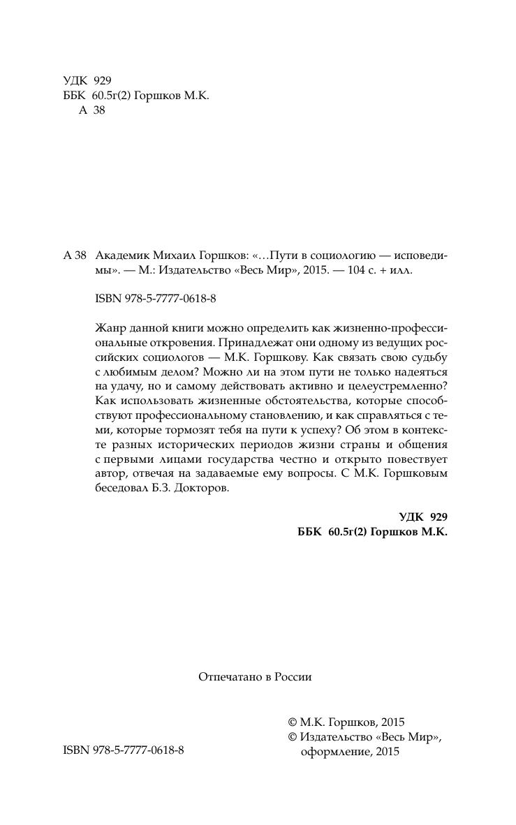 Жанр данной книги можно определить как жизненно профессиональные откровения. Принадлежат они одному из ведущих российских социологов — М.К. Горшкову. Как связать свою судьбу с любимым делом? Можно ли на этом пути не только надеяться на удачу, но и самому действовать активно и целеустремленно?
