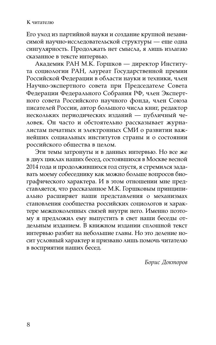 Как использовать жизненные обстоятельства, которые способствуют профессиональному становлению, и как справляться с теми, которые тормозят тебя на пути к успеху? Об этом в контексте разных исторических периодов жизни страны и общения с первыми лицами государства честно и открыто повествует автор, отвечая на задаваемые ему вопросы. С М.К. Горшковым беседовал Б.З. Докторов.