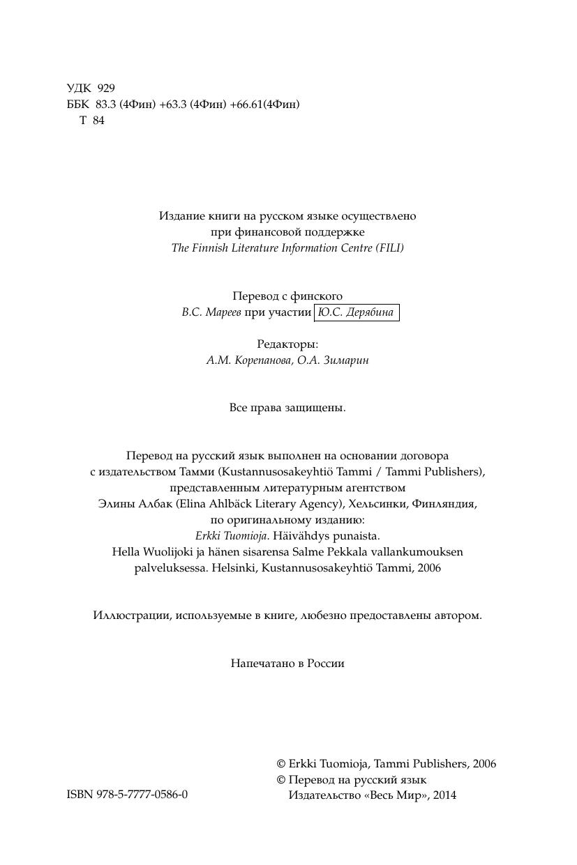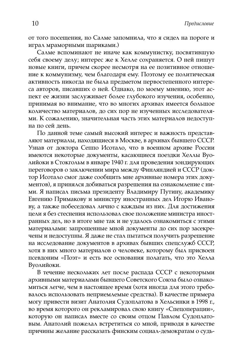 позволяют лучше понять перипетии того непростого времени в Финляндии, Эстонии, Швеции, Великобритании, России и в мире. Автор книги — внук Хеллы Вуолийоки, видный финский политический и государственный деятель, социал демократ, министр иностранных дел Эркки Туомиоя. Книга получила престижную литературную премию «Финляндия» в 2006 г. и переведена на несколько европейских языков.