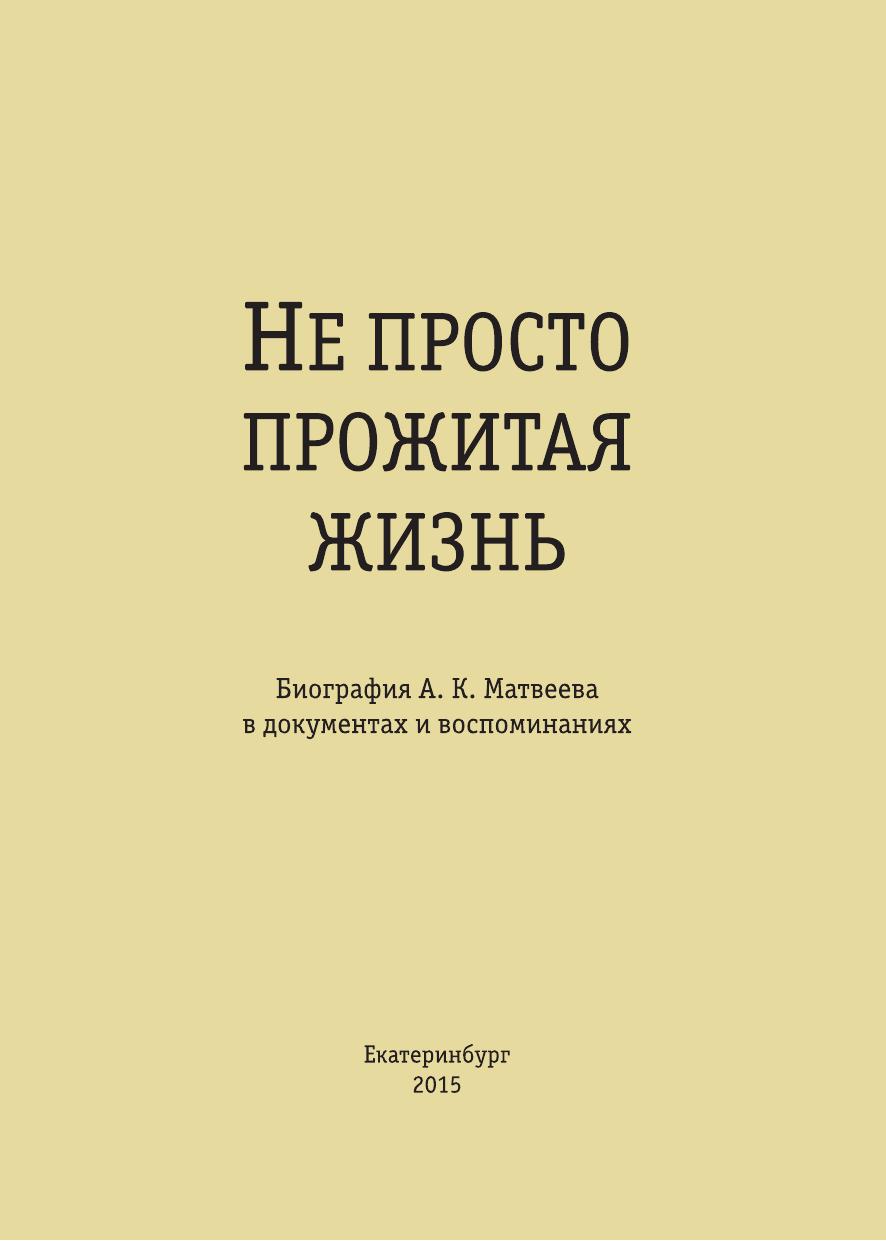 Не просто прожитая жизнь: Биография А. К. Матвеева в документах и воспоминаниях