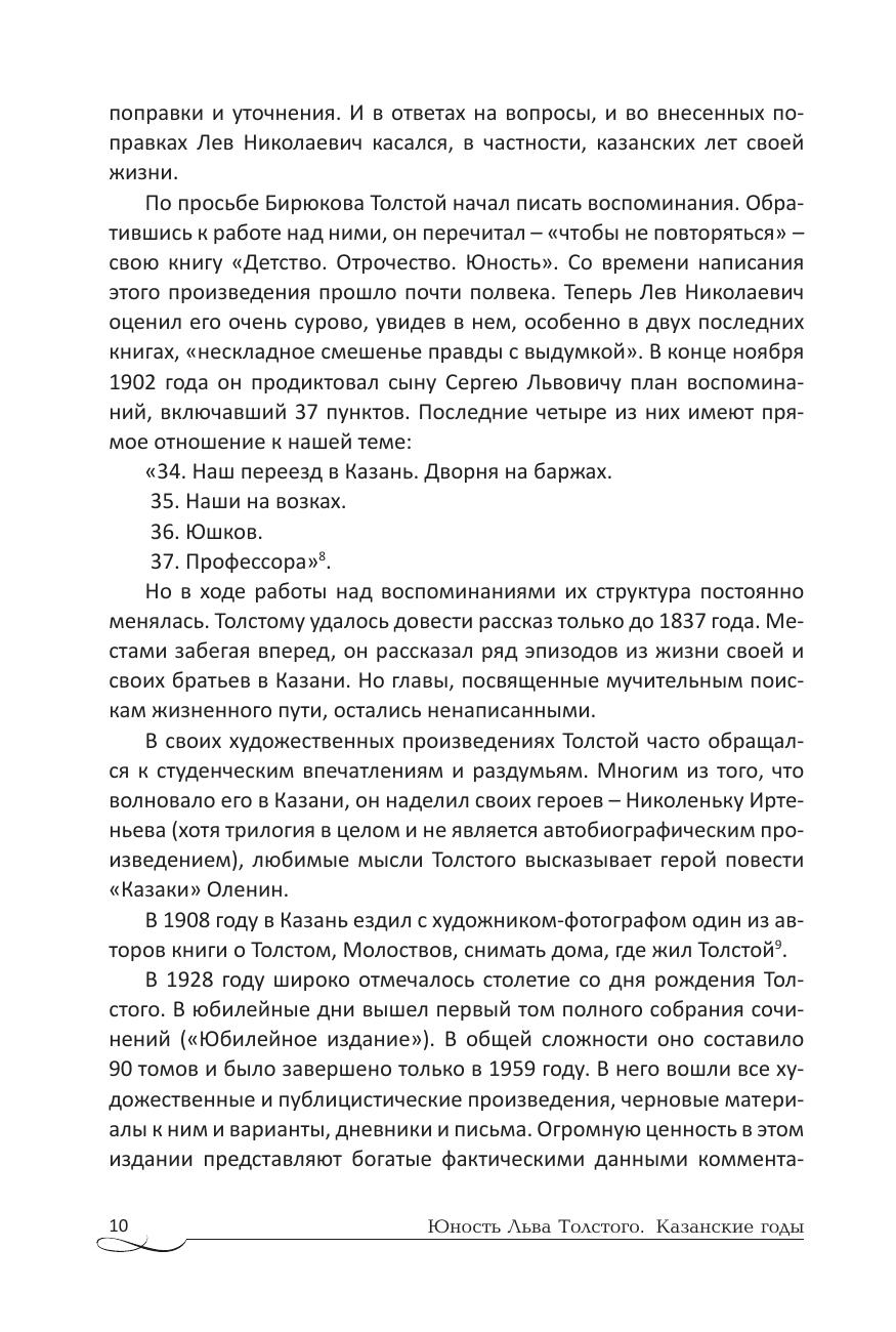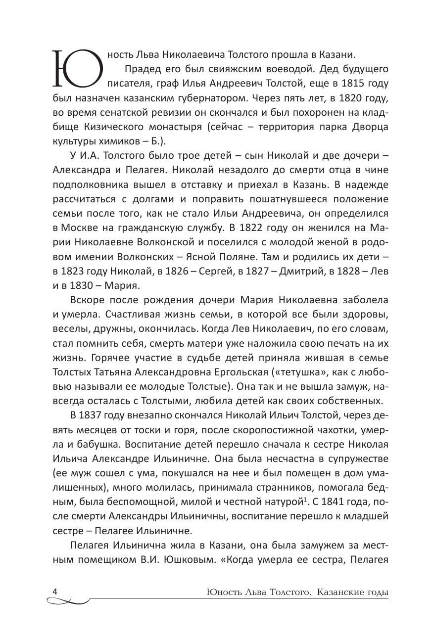 исследованиями по этой теме он работал последние несколько лет своей жизни, но не успел их опубликовать. В основе данного издания – рукопись ученого. Автор опирается на большой фактический материал, корректирует многие мифы о молодом Толстом, широко использует публикации местных газет, журналов, архивов, малоизвестные воспоминания о Казанском университете и Казани 1840-х годов. Жизнь Толстого восстанавливается на широком фоне культурной жизни города. Восстанавливается история духовной жизни молодого Толстого, позволяющая понять, как именно в Казани произошел тот духовный переворот, без которого бы не было Толстого-писателя.