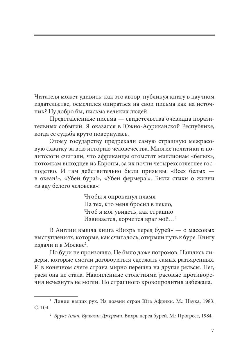 Когда-то мыс Доброй Надежды называли «морская таверна» на пути из Европы на Восток. Для русских кораблей — на пути из Петербурга к Владивостоку и Русской Америке. А в наши дни? Чем интересен Юг Африки? Почему важно знать события в этом далеком краю земли? Автор жил там годами, на переломе истории Южно-Африканской Республики, и старался понять значение этого опыта для всего мира. Для историков, политологов, культурологов, студентов, а также широкого круга читателей, интересующихся историей Южной Африки.
