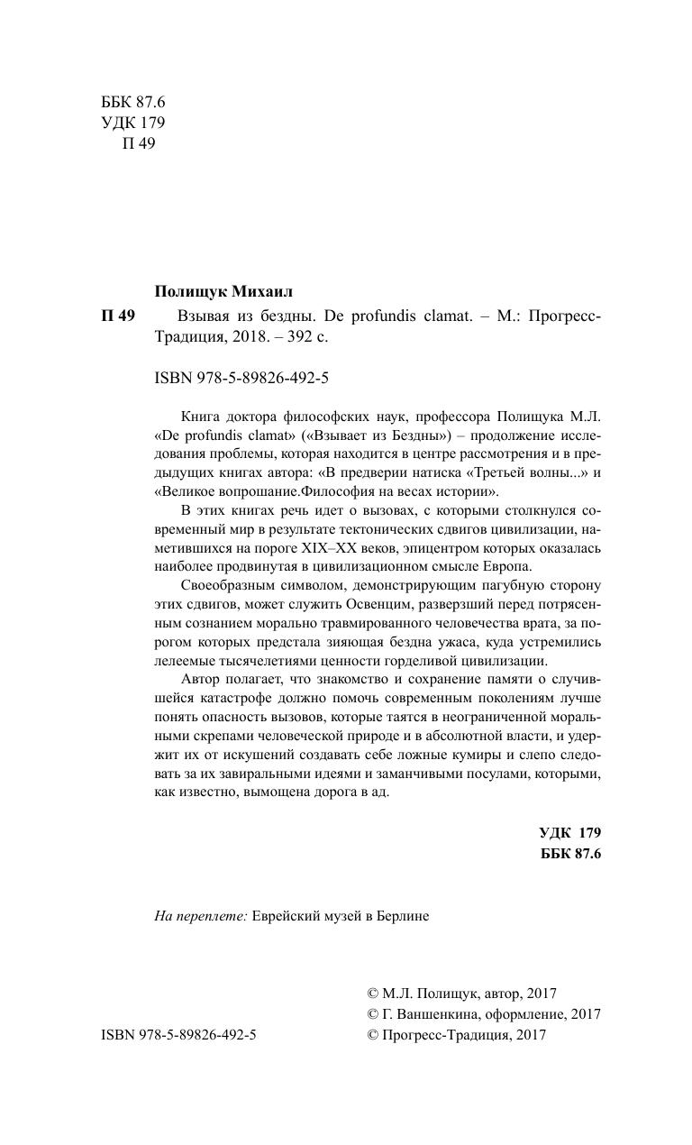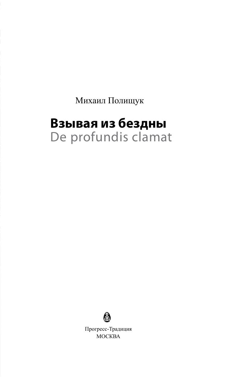 Книга доктора философских наук, профессора Полищука М.Л. «De profundis clamat» («Взывает из Бездны») – продолжение исследования проблемы, которая находится в центре рассмотрения и в предыдущих книгах автора: «В предверии натиска «Третьей волны...» и «Великое вопрошание.Философия на весах истории».