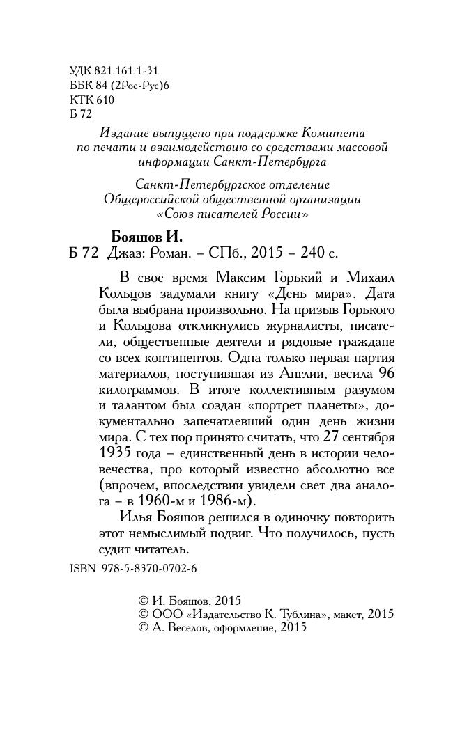 Илья Бояшов решился в одиночку повторить этот немыслимый подвиг. Что получилось, пусть судит читатель.