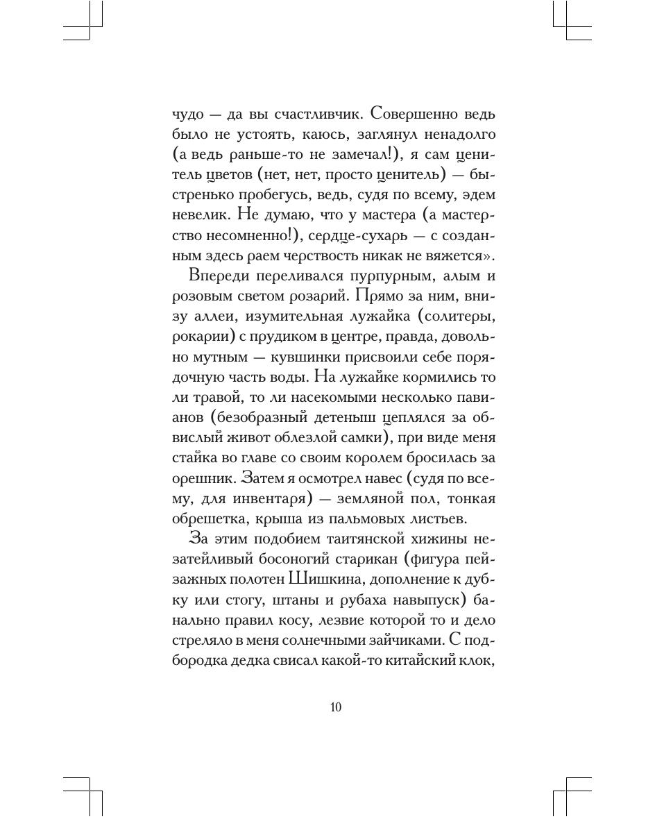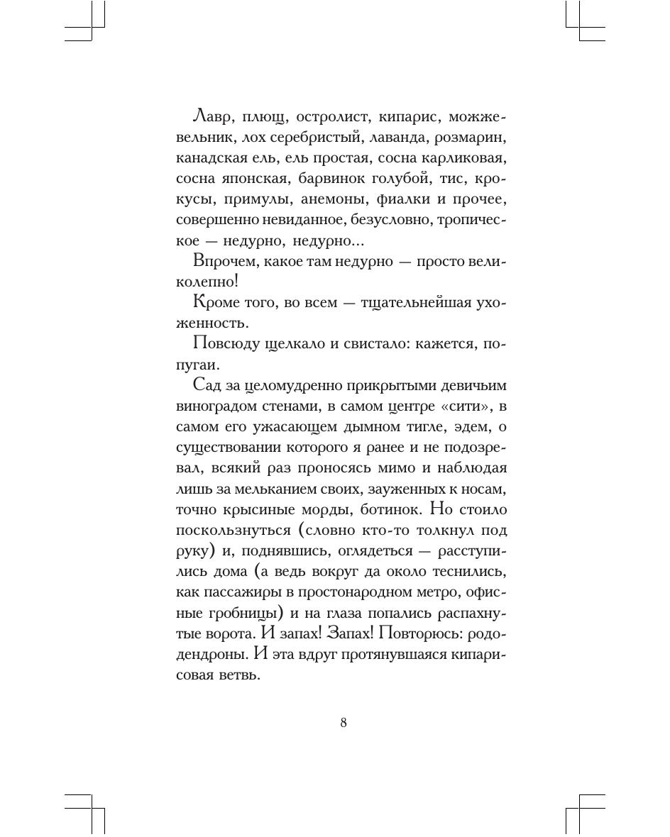 Новый роман Ильи Бояшова, лауреата литературной премии «Национальный бестселлер» и финалиста премии «Большая книга», подводит читателя к парадоксальной мысли: рай, дабы оставаться раем, требует от садовника ежедневного адского труда. Годы и годы уходят у заложника парадиза на возделывание чуда, насладиться которым у него не остается сил. Оправдывает ли Эдем своим цветением и птичьим хором тяжкие усилия садовника? Получит ли каторжный труд воздаяние? У автора на этот счет нет никаких иллюзий, и рассказывает он свою необычайную историю так, что читателю нет оснований ему не верить.